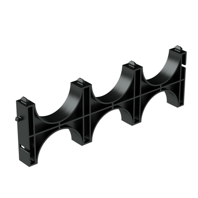 Назначение держателя расстояния (кластера) для двустенных труб - закрепление труб в определенном положении и сохранение между ними фиксированного расстояния. Кластер имеет пазы для трех труб диаметром 63 мм. Если необходимо, кластеры могут быть соединены между собой, чтобы разместить большее количество труб.