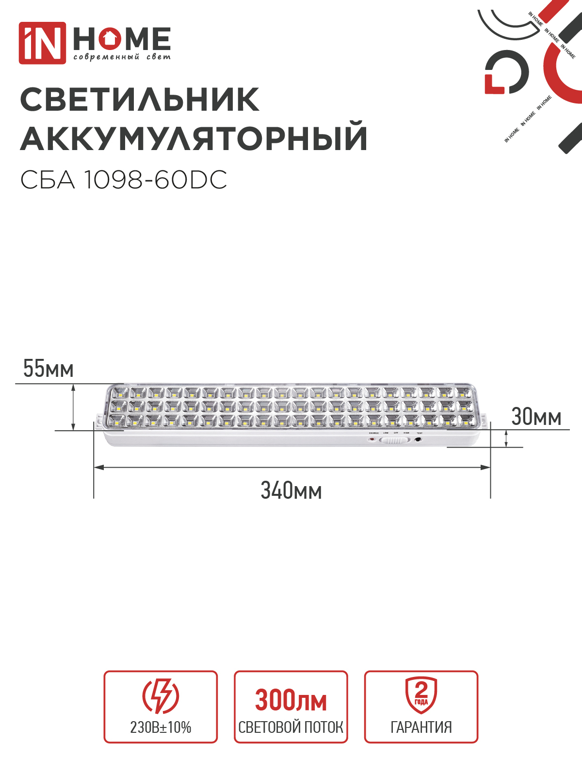 Светильник светодиодный аварийный СБА 1098-60DC 60 LED 2.0Ah lithium battery DC IN HOME