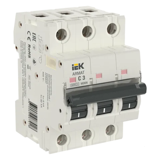 Автоматический выключатель M06N 3P 03А 6кА х-ка С ARMAT IEK имеет характеристику С, что означает, что он способен выдерживать ток короткого замыкания до 6 кА. Это обеспечивает надежную защиту электрических цепей от перегрузок и коротких замыканий.