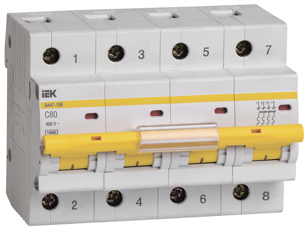 Автоматический выключатель ВА47-100 4P 80А 10кА характеристика С IEK