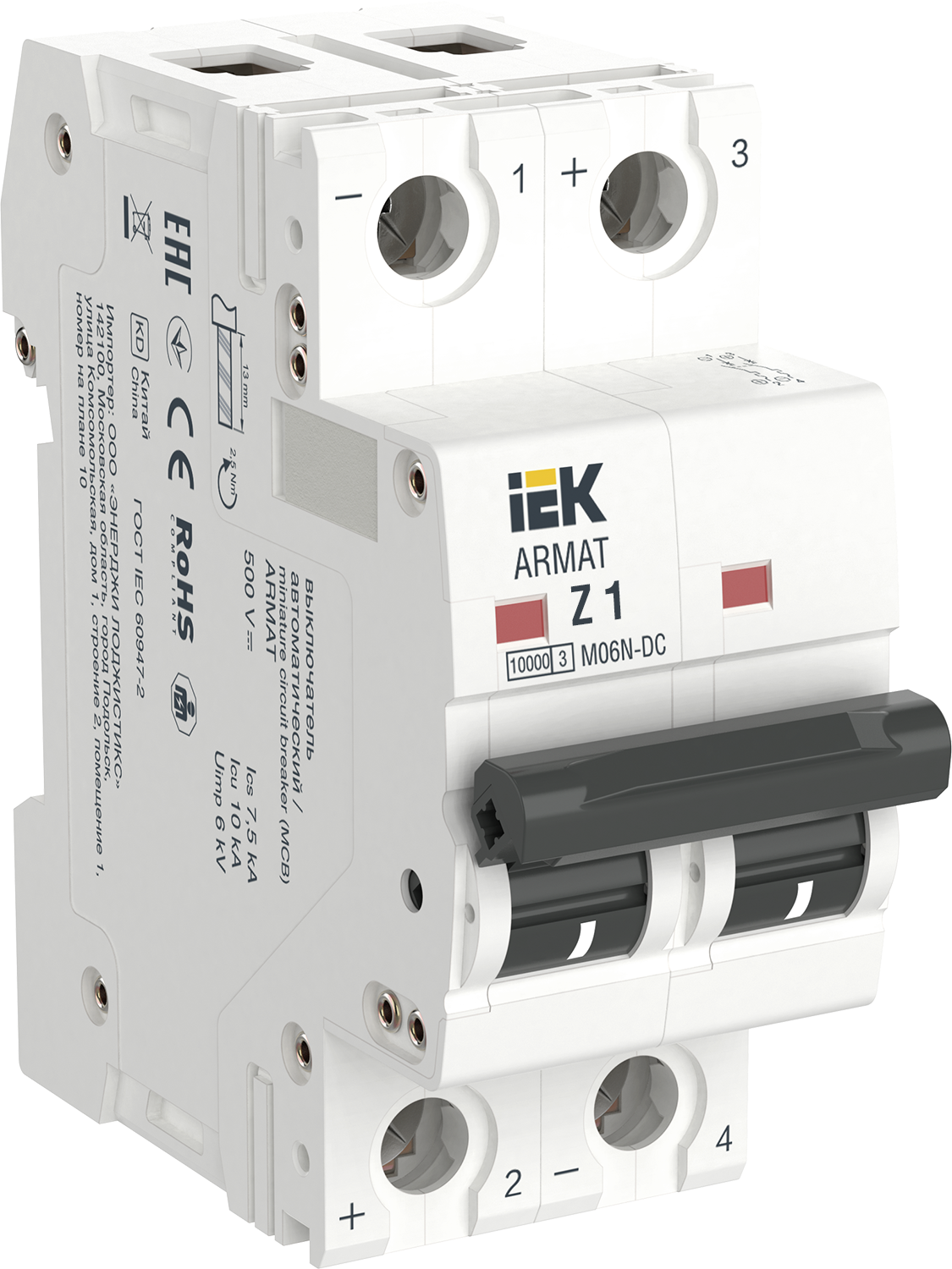 Автоматический выключательM06N-DC 2P 1А 6кА х-ка Z ARMAT IEK