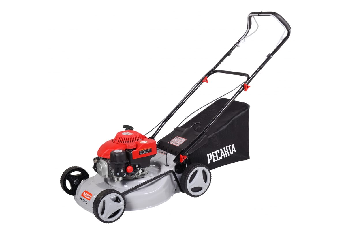 Более широкий набор дополнительных опций, таких как боковой выброс, мульчирование или самоходность (привод на колёса). Особенности бензиновой газонокосилки Ресанта: Все металлические части конструкции окрашены, что предохраняет их от коррозии.