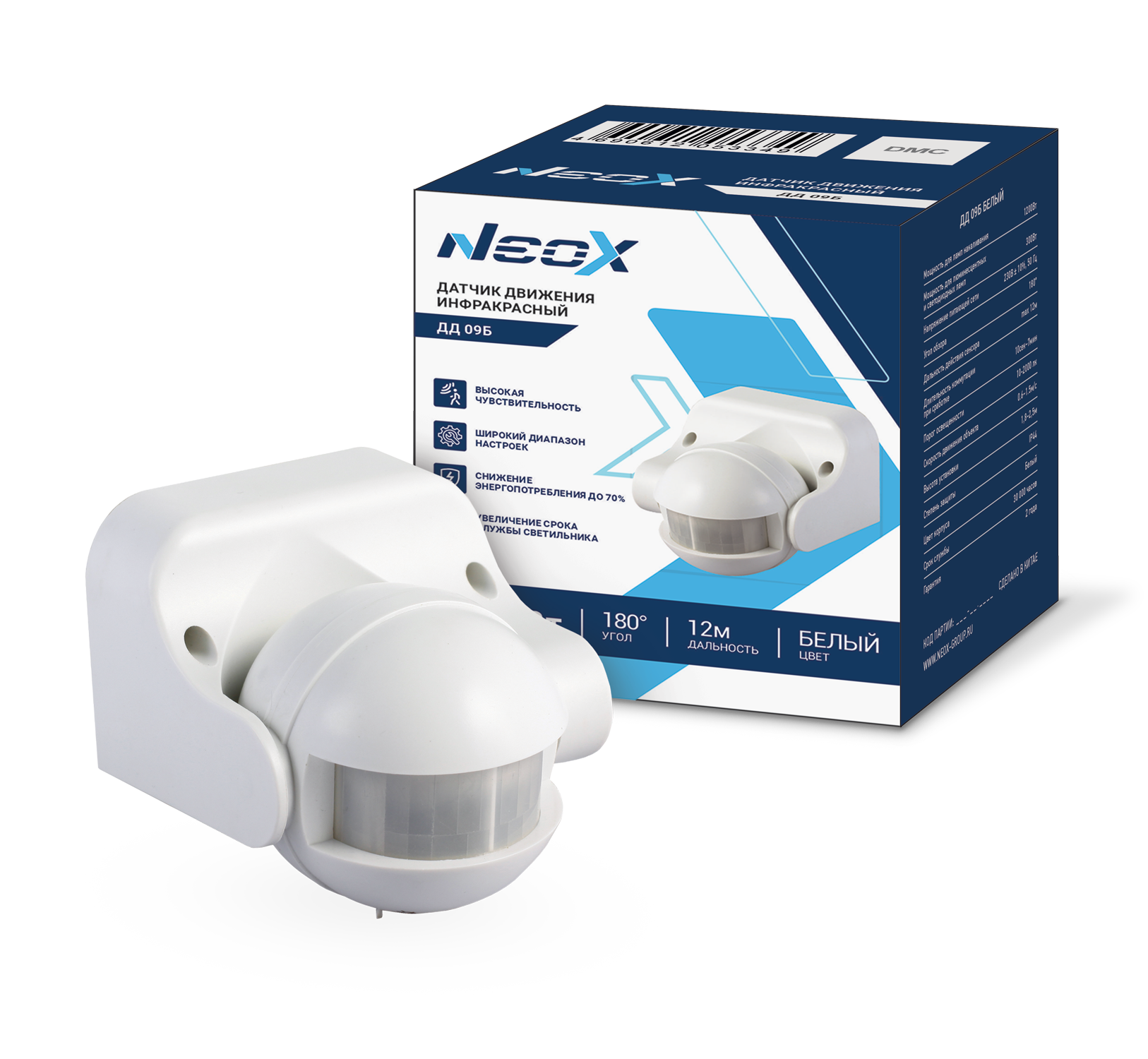 Датчик движения инфракрасный ДД 09Б 1200Вт 180 гр.12м IP44 белый NEOX