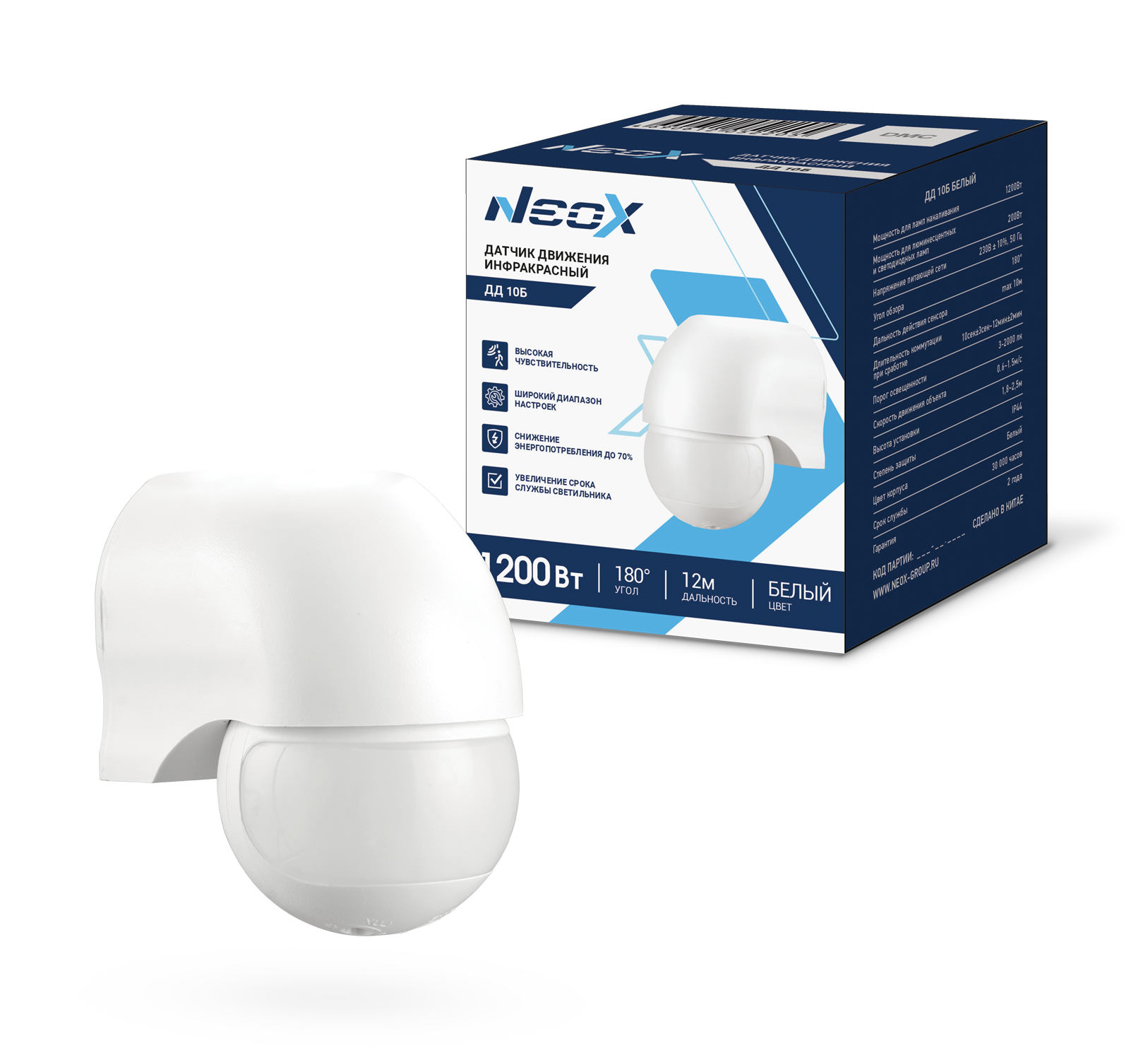 Датчик движения инфракрасный ДД 10Б 1200Вт 180 гр. 12м IP44 белый NEOX