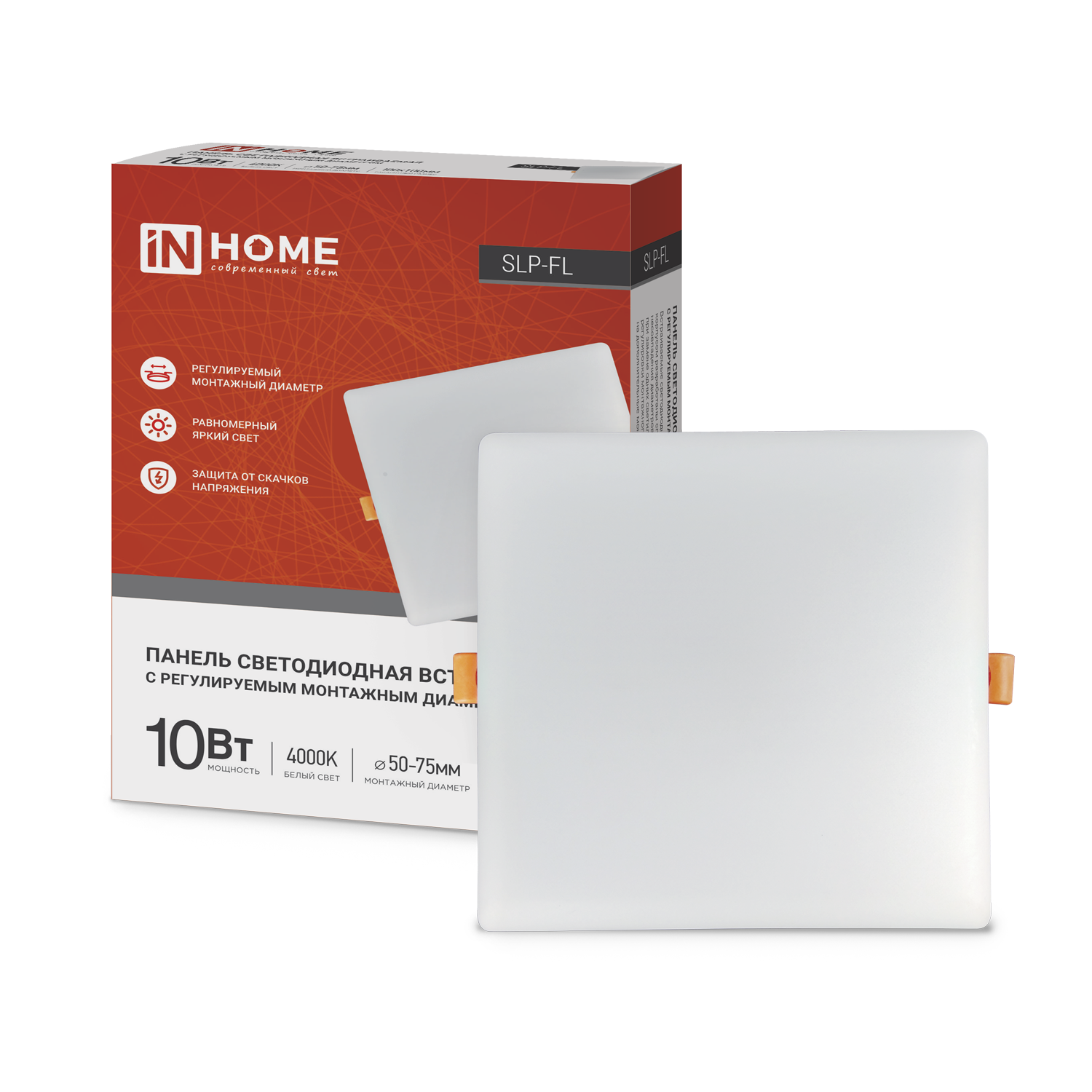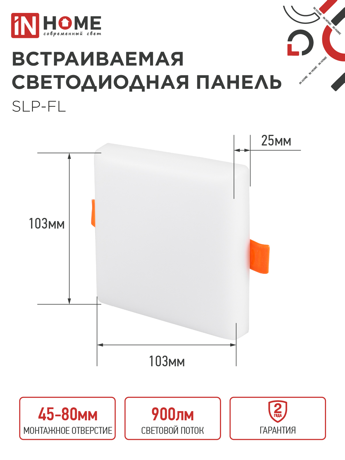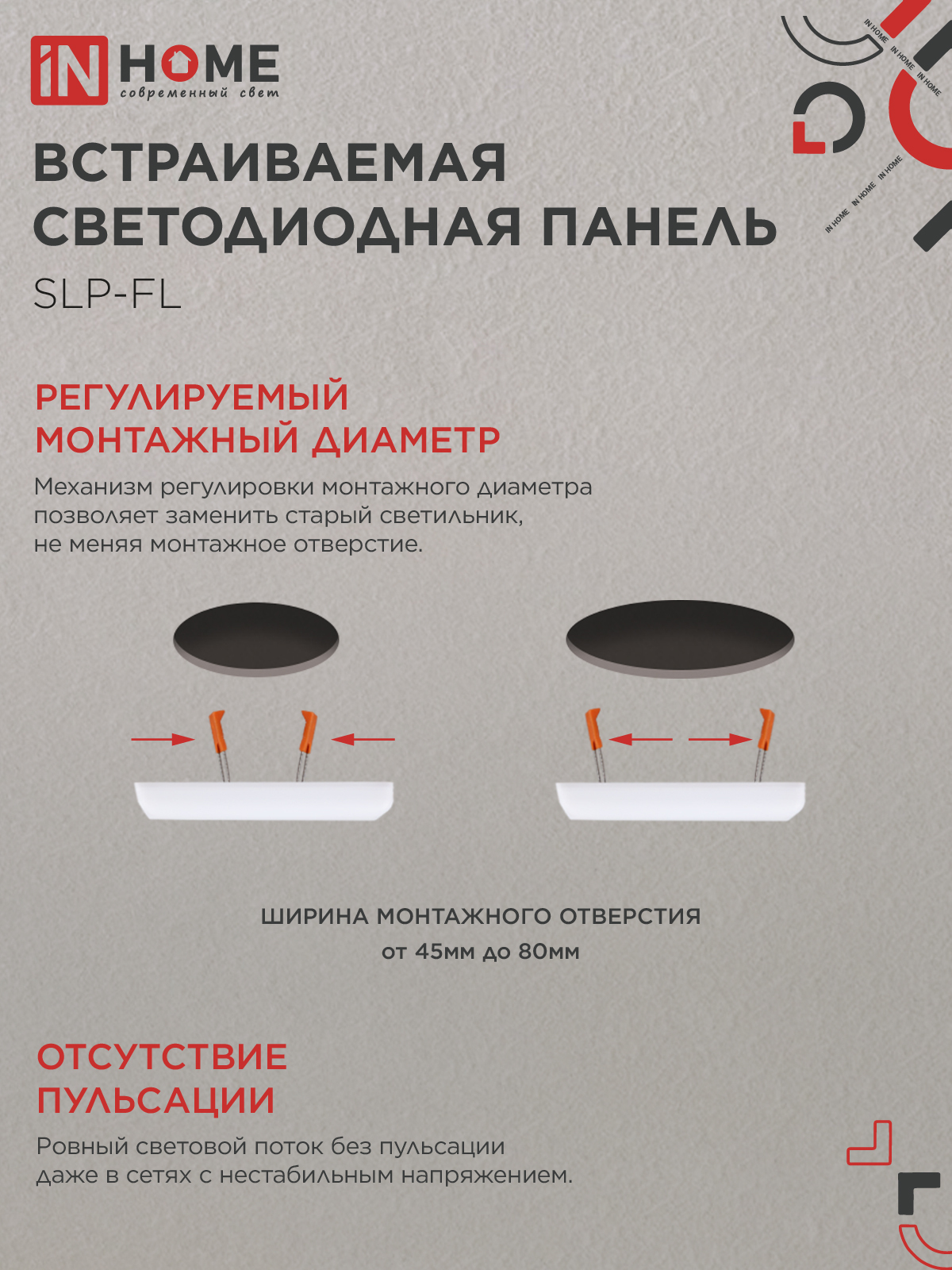 Панель светодиодная встраиваемая безрамочная SLP-FL 10Вт 230В 4000К 900Лм 103мм с рег.монтажом 45-80мм белая IP20 IN HOME