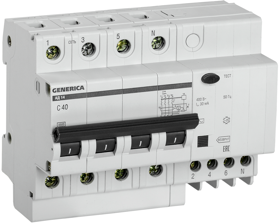 Дифференциальный автомат АД14 4Р 40А 30мА GENERICA