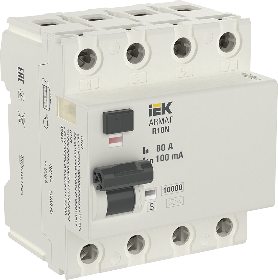 IEK ARMAT Выключатель дифференциального тока R10N 4P 80А 100мА тип A-S - AR-R10N-4-080AS100 - это надежное и безопасное устройство, которое защитит вашу электрическую сеть от поражения электрическим током и пожара. Оно подходит для использования в домах, квартирах, офисах и других помещениях.