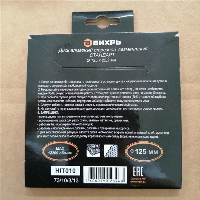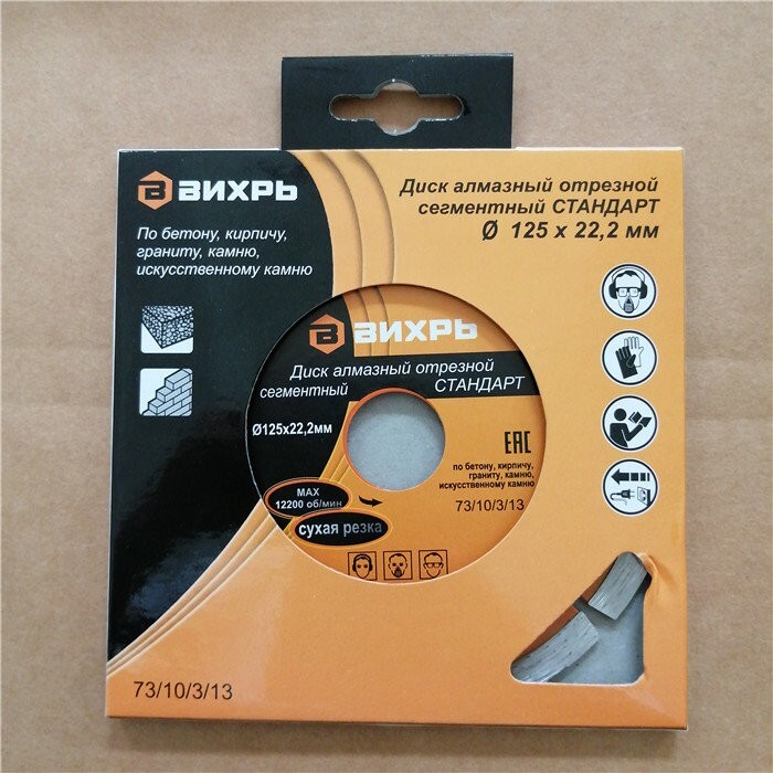 Диск алмазный отрезной сегментный СТАНДАРТ, 125х22,2 мм, сухая резка Вихрь
