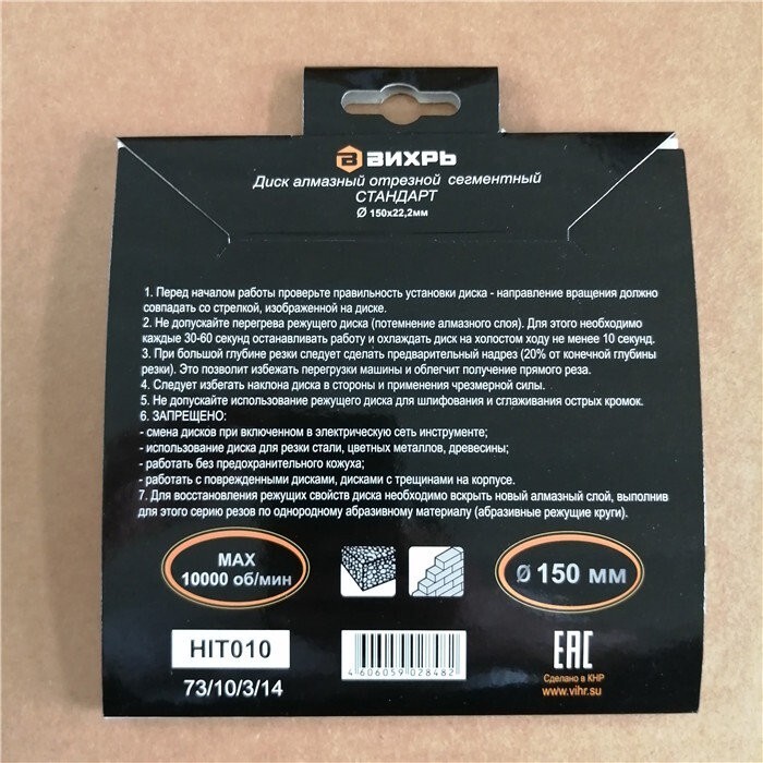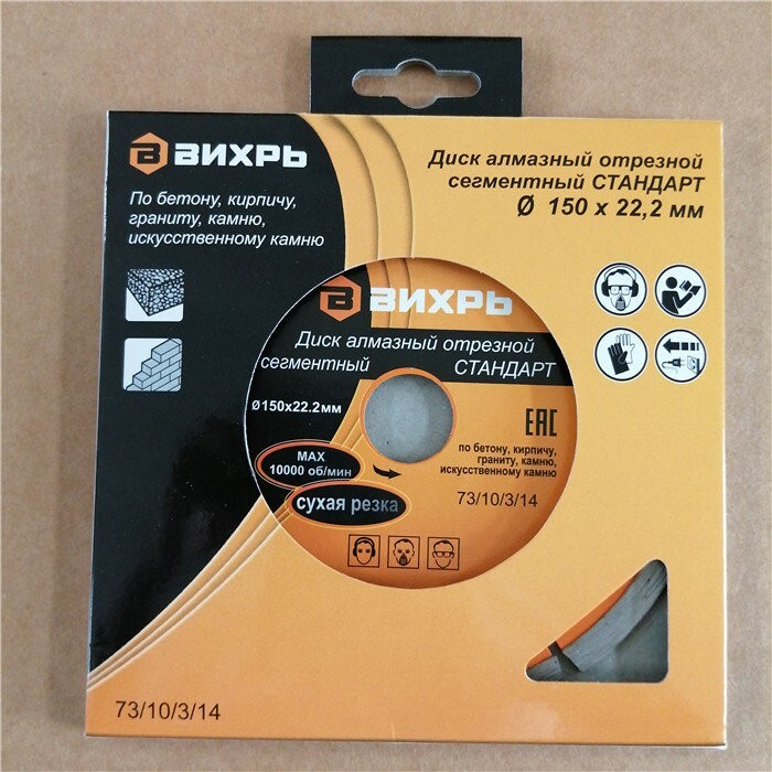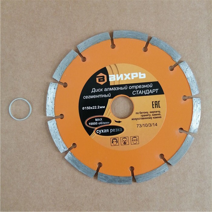 Диск алмазный отрезной сегментный СТАНДАРТ, 150х22,2 мм, сухая резка Вихрь