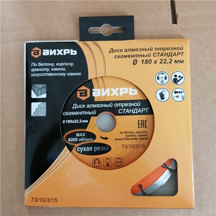 Диск алмазный отрезной сегментный СТАНДАРТ, 180х22,2 мм, сухая резка Вихрь