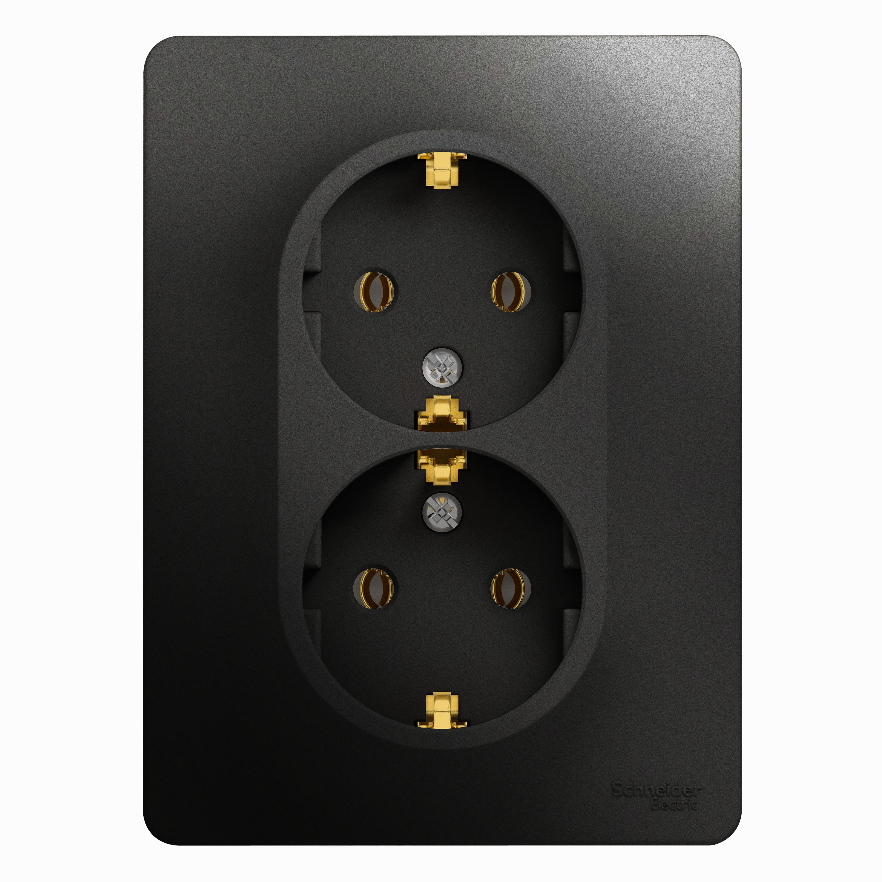 Розетка двойная Glossa SE с заземлением антрацит в сборе