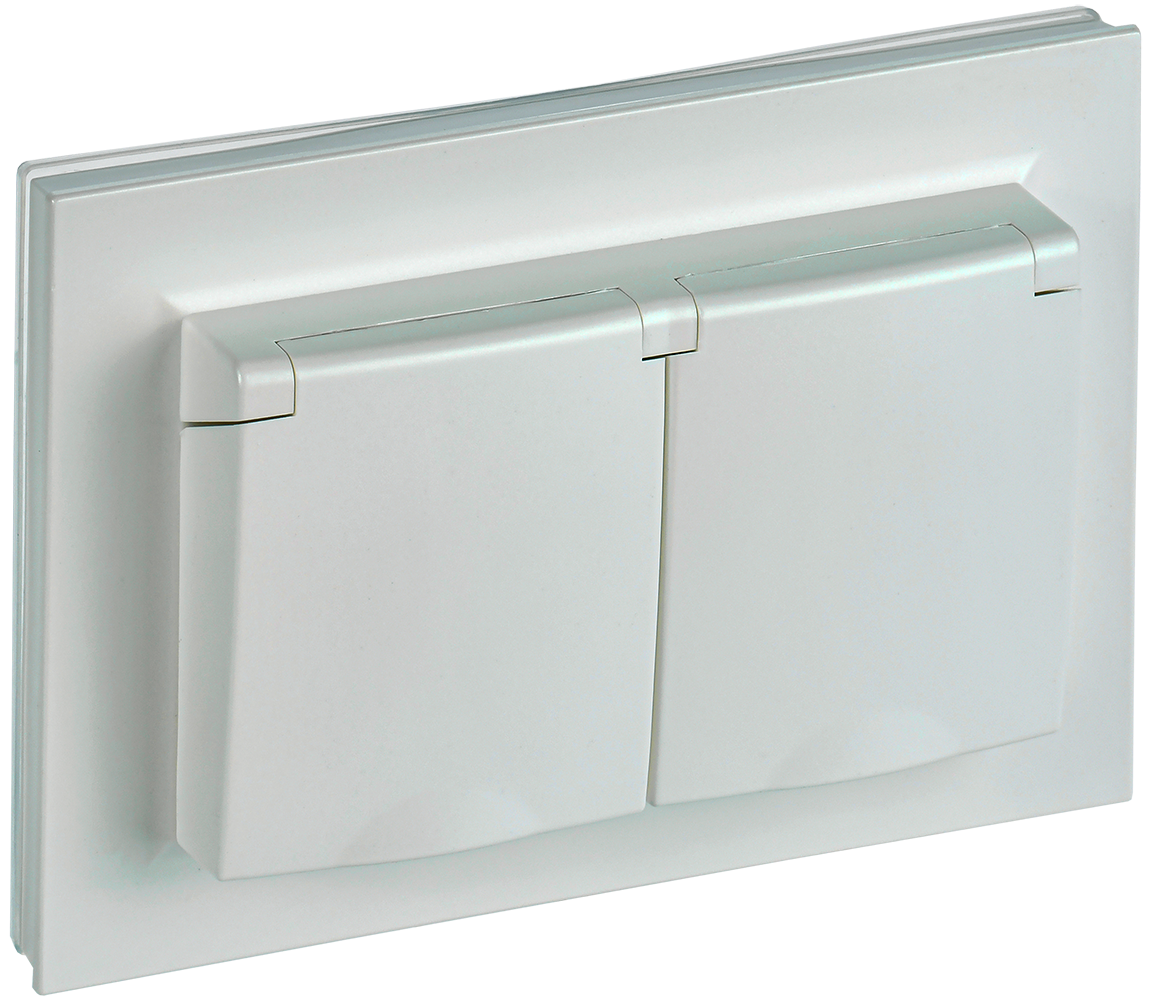 Розетка двойная с крышкой 16А IP44 BRITE IEK жемчуг в сборе