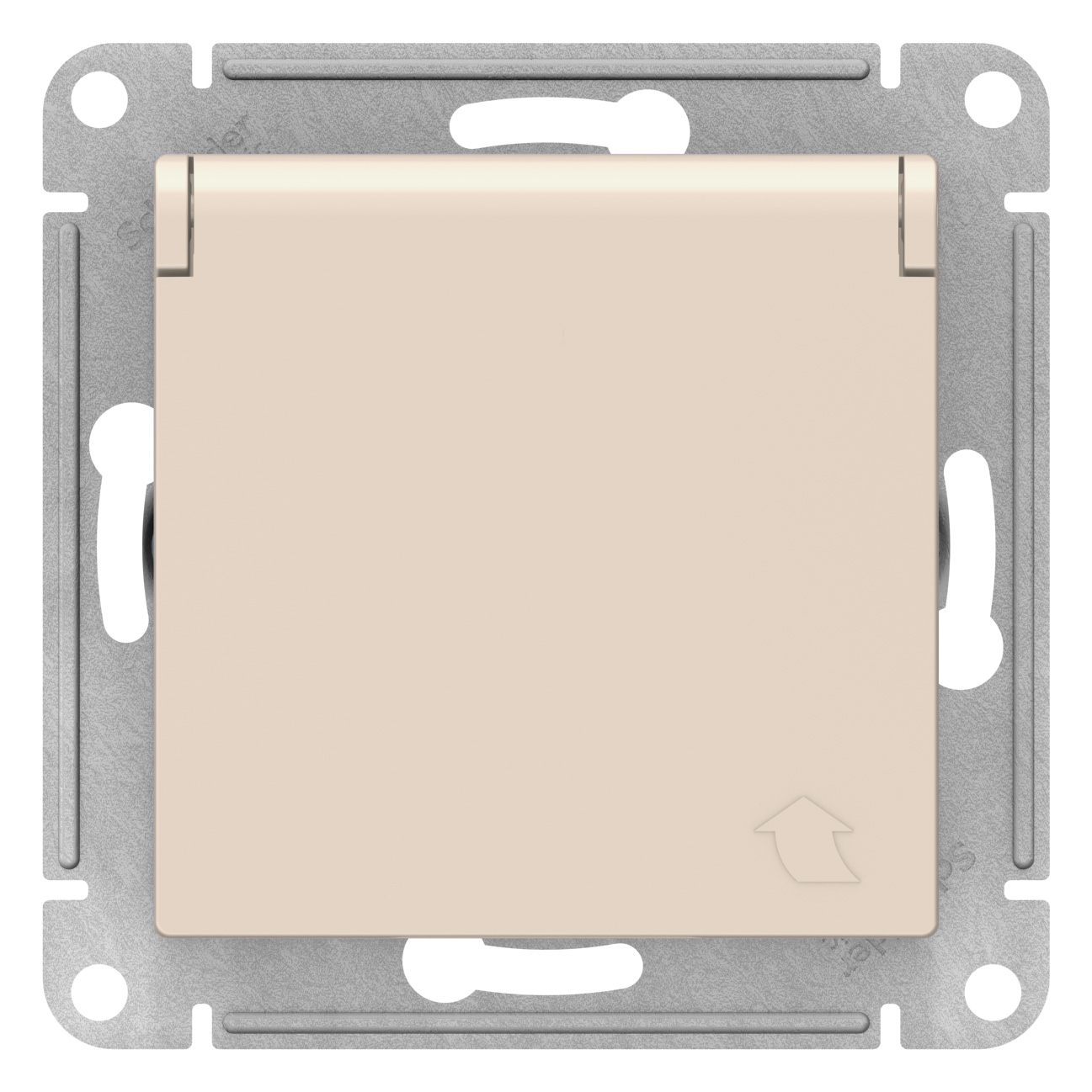 Розетка одинарная AtlasDesign SE с заземлением со шторками с крышкой бежевая