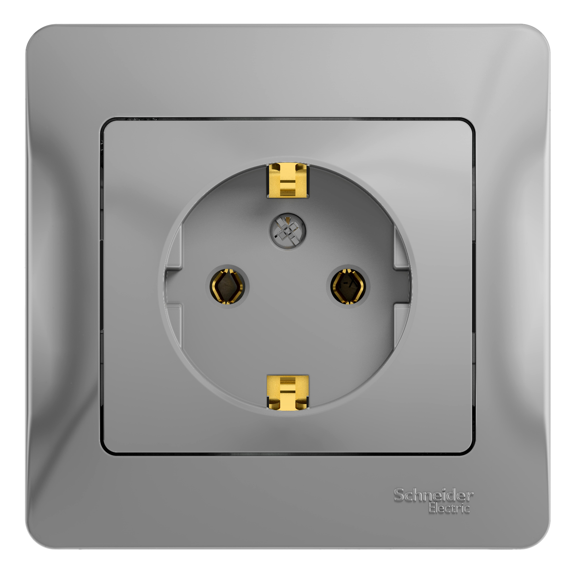 Розетка одинарная Glossa SE с заземлением алюминий в сборе