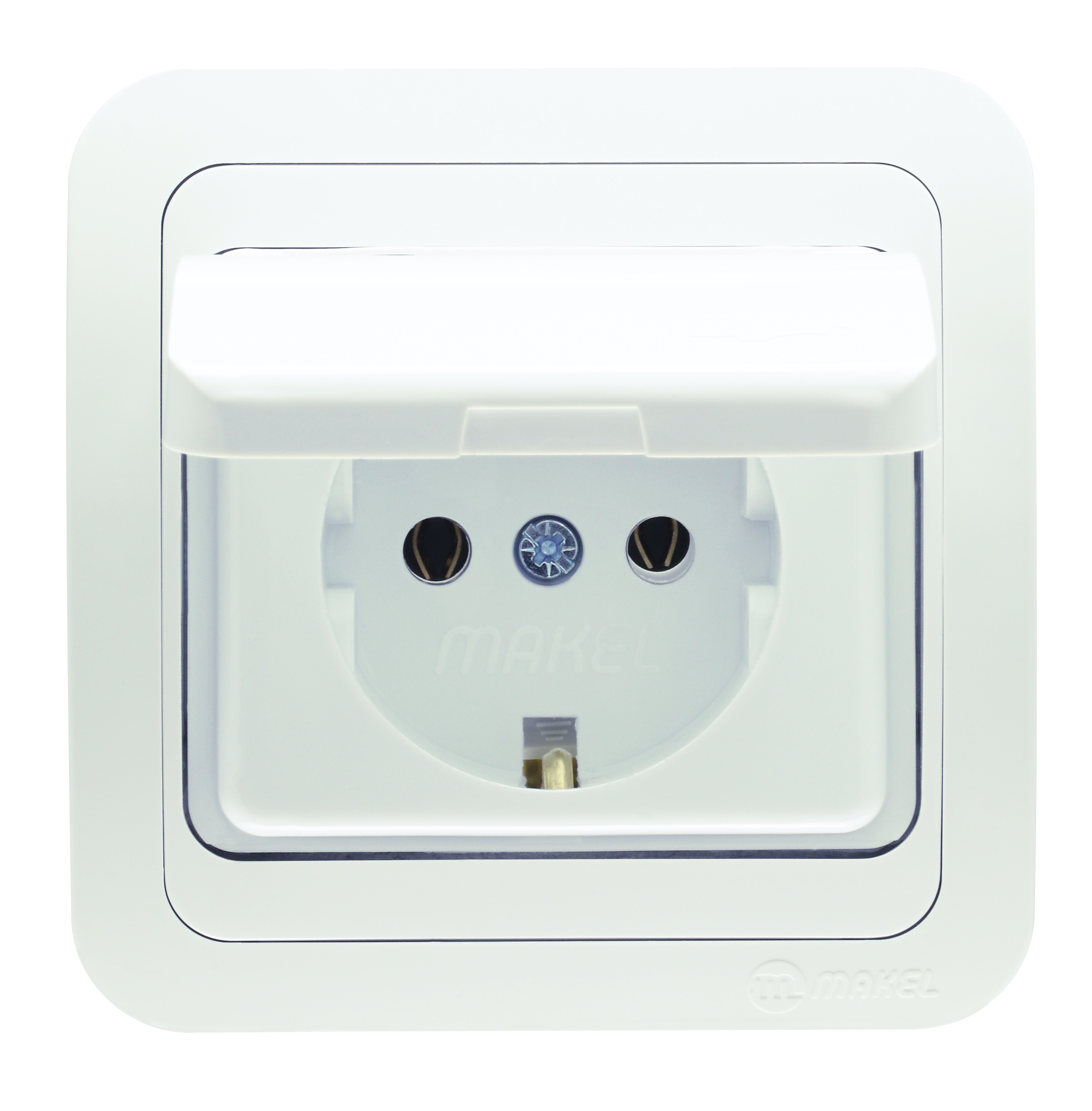 Розетка одинарная МИМОЗА MAKEL с крышкой с заземлением керамика белая