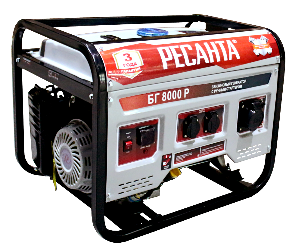В условиях временного или постоянного отсутствия электроэнергии обеспечить питание электрооборудования можно с помощью генератора РЕСАНТА модели БГ 8000 P. Бензогенератор демонстрирует высокий КПД и хорошие показатели мощности. Генератор РЕСАНТА БГ 8000 P имеет увеличенный ресурс двигателя, медную обмотку альтернатора.