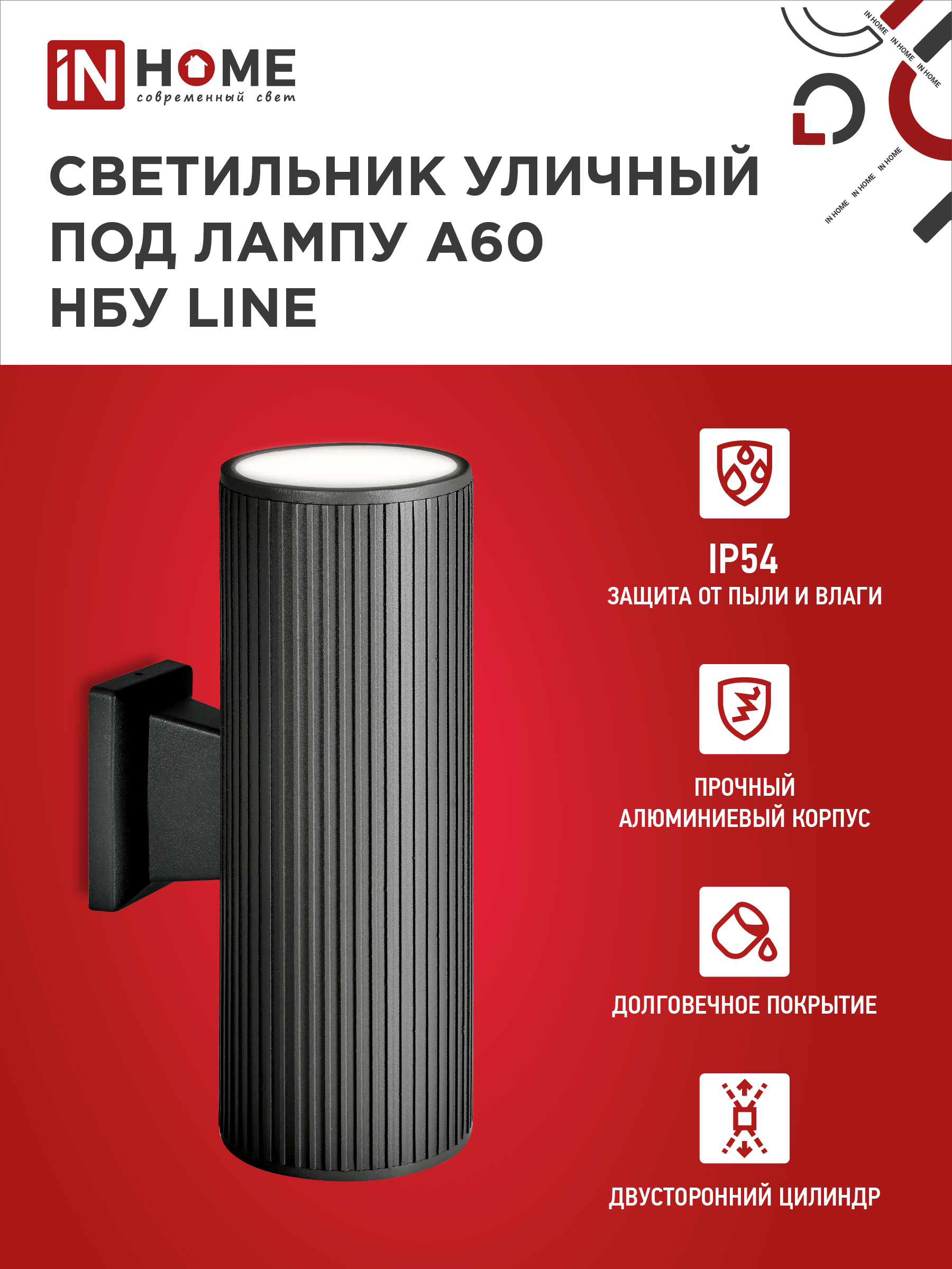 Светильник уличный настенный двусторонний НБУ LINE-2хA60-BL алюминиевый черный IP54 IN HOME