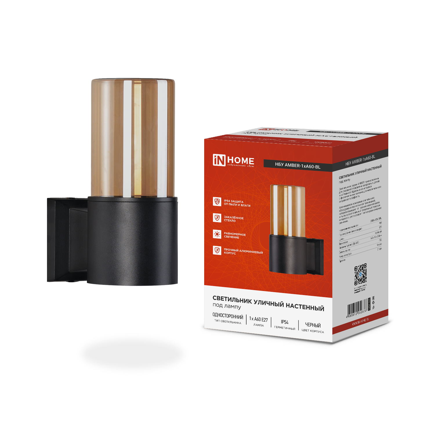 Светильник уличный настенный односторонний НБУ AMBER-1хA60-BL алюминиевый черный IP54 IN HOME