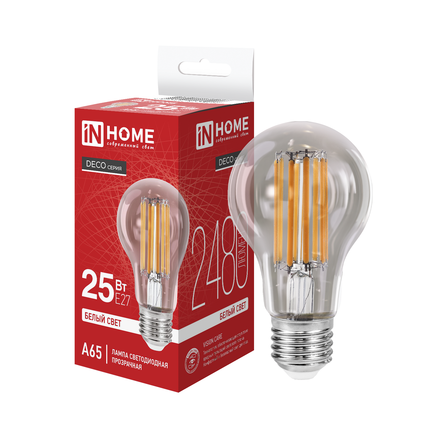 Лампа светодиодная LED-A65-deco 25Вт 230В Е27 4000К 2480Лм прозрачная IN HOME