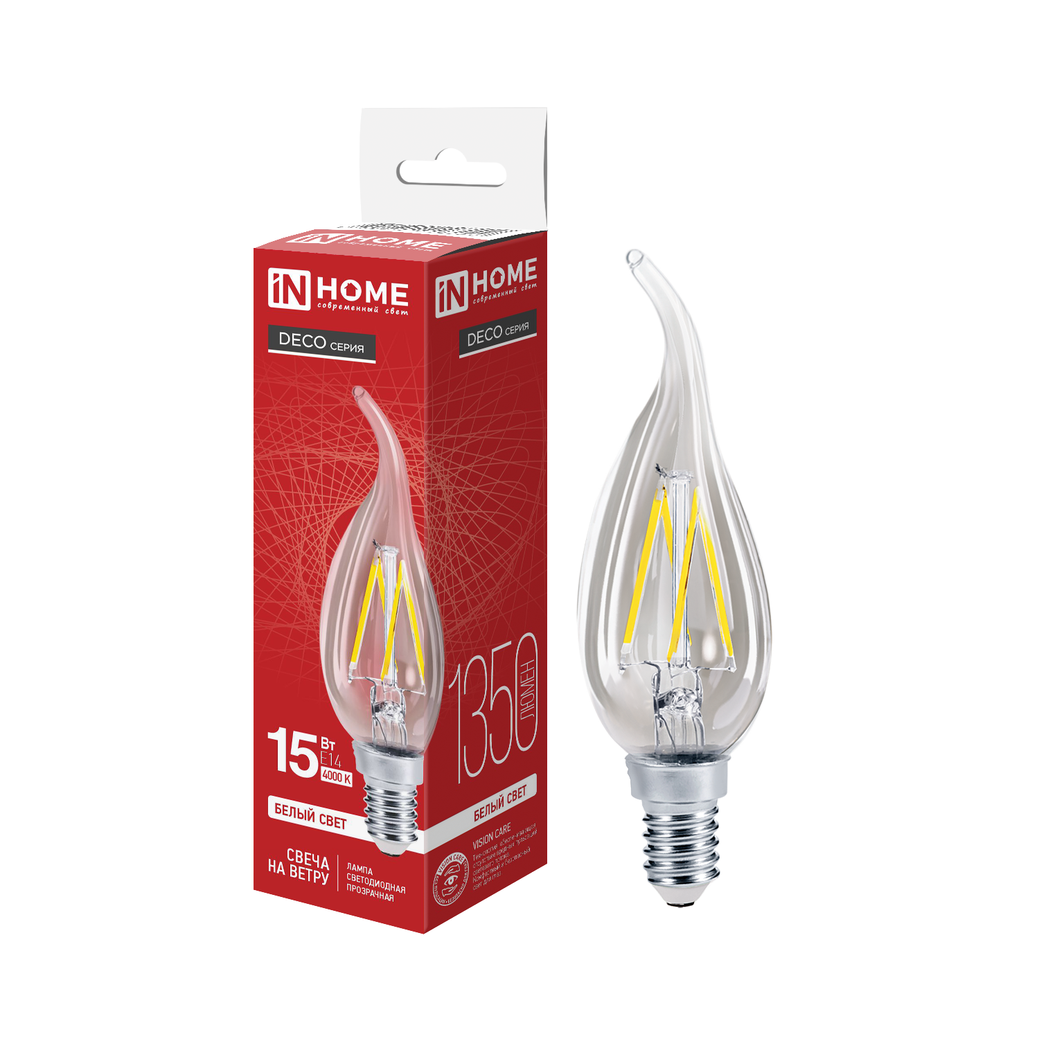 Лампа светодиодная LED-СВЕЧА НА ВЕТРУ-deco 15Вт 230В Е14 4000К 1455Лм прозрачная IN HOME