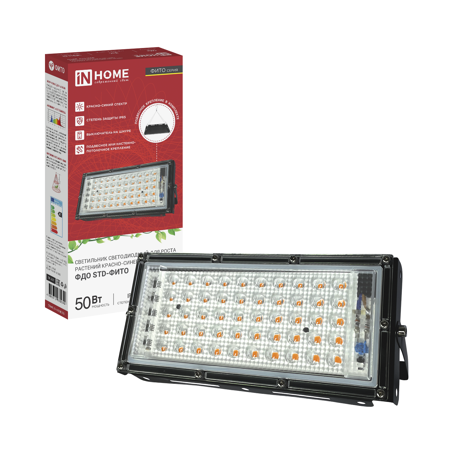 Прожектор светодиодный ФДО STD-ФИТО красно-синий спектр 50Вт IP65 черный IN HOME