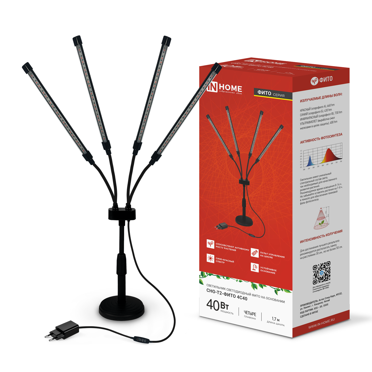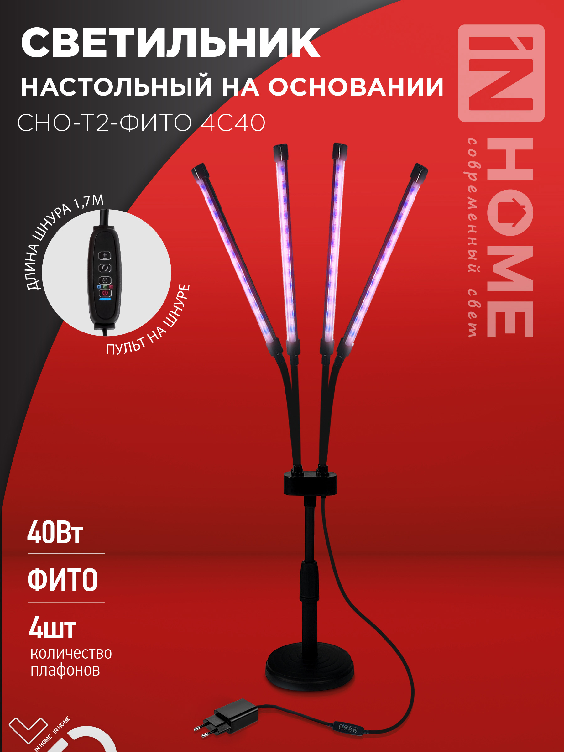 Светильник настольный на основании светодиодный СНО-Т2-ФИТО 4С40 40Вт 4 плафона, пульт на шнуре ЧЕРНЫЙ IN HOME