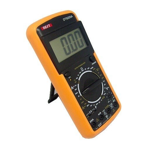 Функционально мультиметр заменяет несколько измерительных устройств: вольтметр, амперметр, омметр. Это очень удобно иметь компактное устройство, способное измерить практически всё. Прибор оснащен ЖК дисплеем 3.5 разряда, отображающим результат измерений. Комбинированная защита от перегрузки и перенапряжений. Есть индикатор состояния батарей. Комплектуется щупами с проводами.