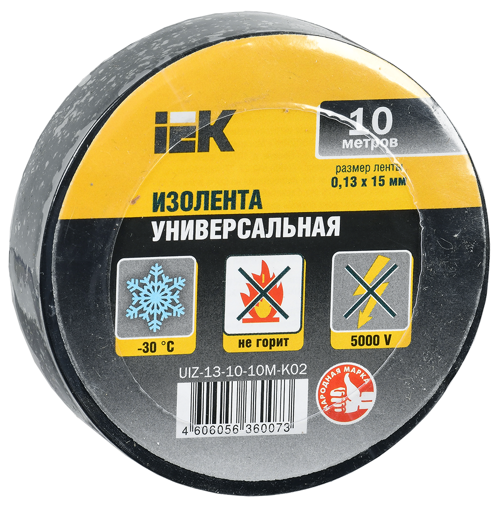 В ассортименте IEK представлена изолента семи цветов: белая, красная, синяя, желтая, зеленая, черная и желто-зеленая.