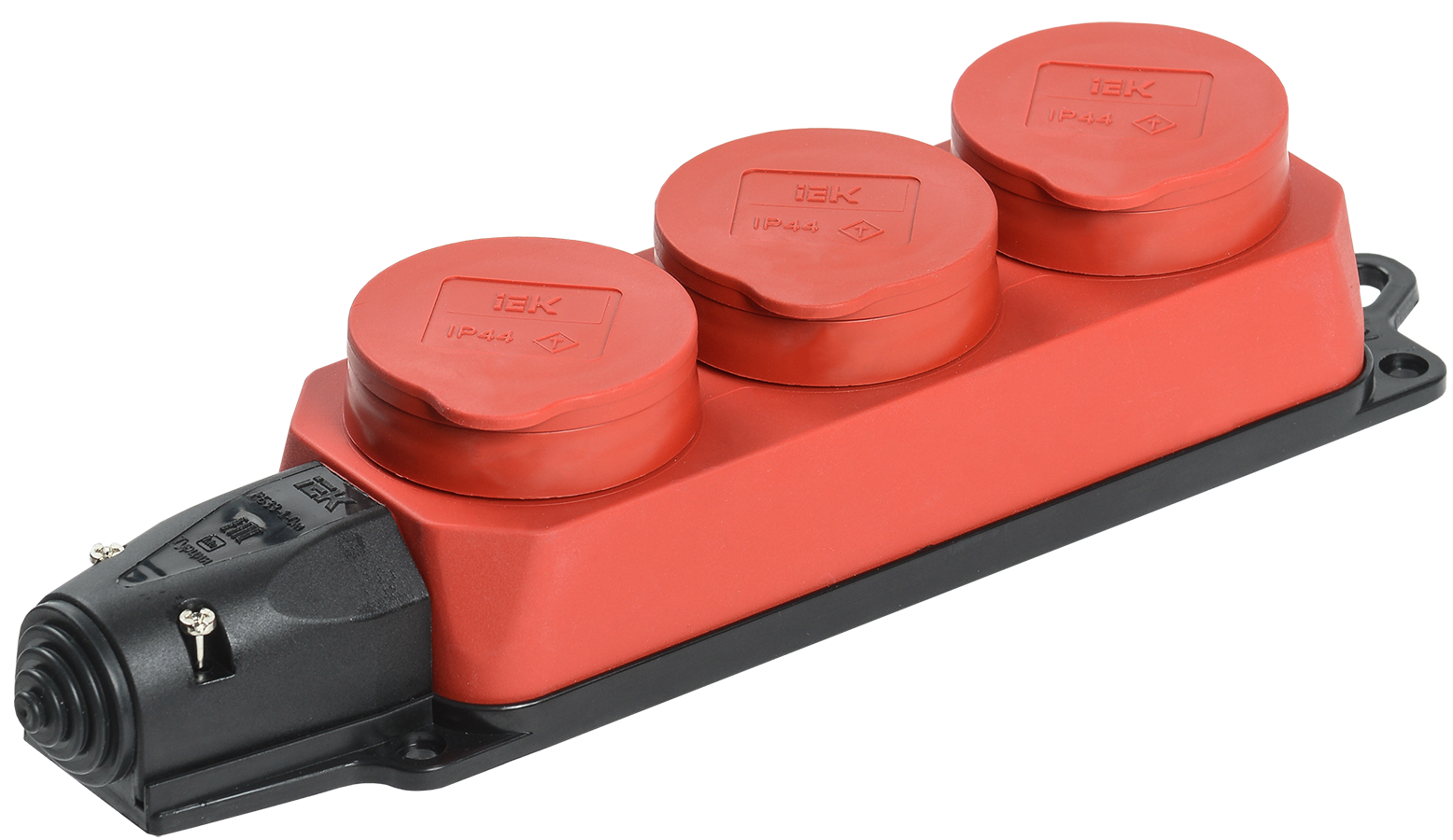 РБ33-1-0м Розетка тройная ОМЕГА IP44 красная IEK