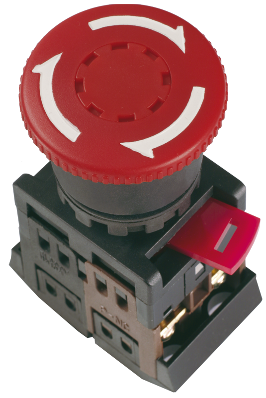 Кнопка AE-22 "Грибок" с фиксацией красная d22мм 240В 1з+1р IEK
