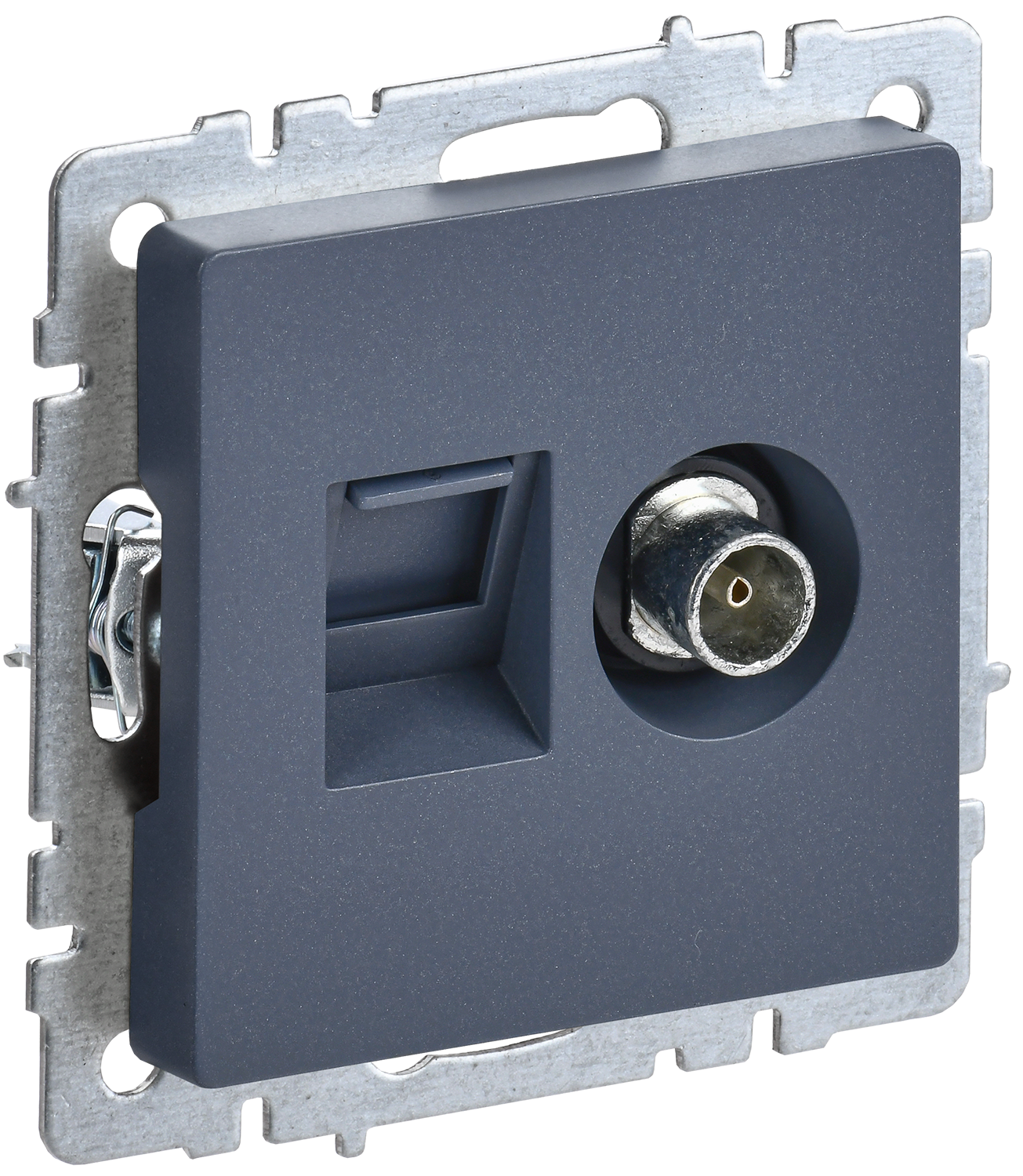 Розетка двойная телевизионная+RJ45 кат.5E BRITE IEK маренго