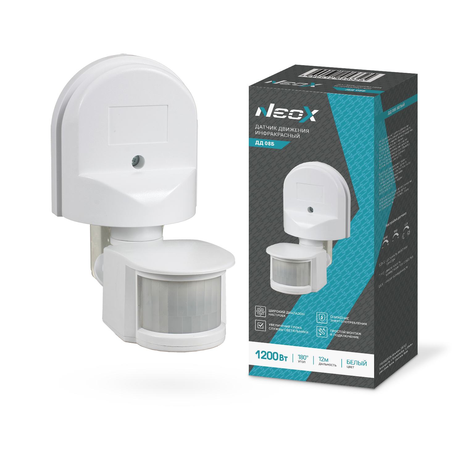 Датчик движения инфракрасный ДД 08Б 1200Вт 180 гр.12м IP44 белый NEOX