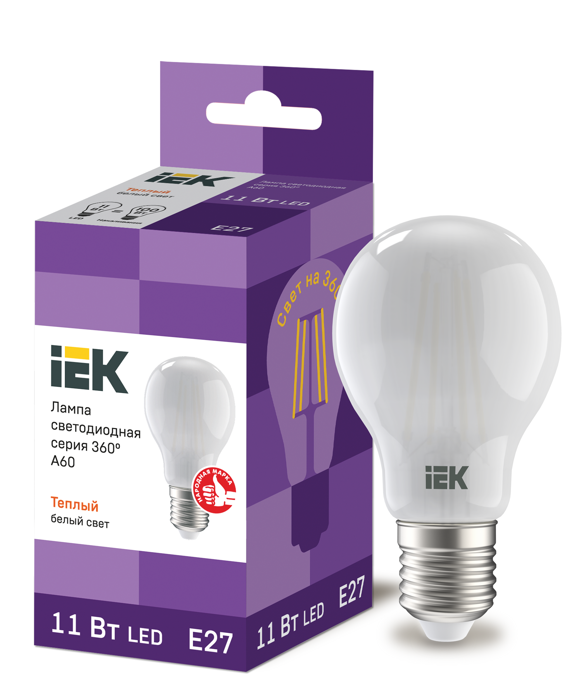 Лампа LED A60 груша матовая 11Вт 230В 3000К E27 серия 360° IEK