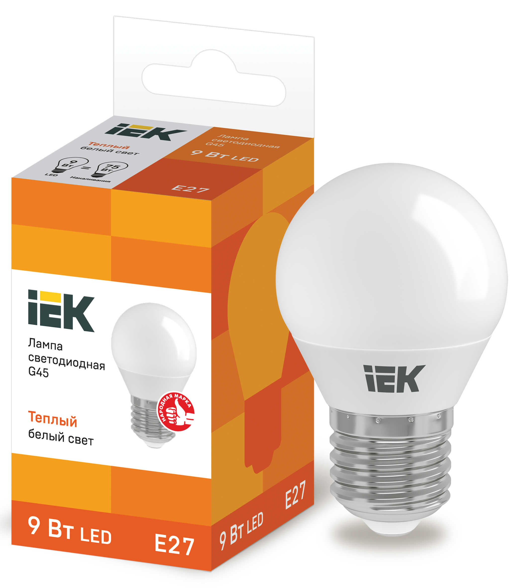 Лампа LED G45 шар 9Вт 230В 3000К E27 IEK