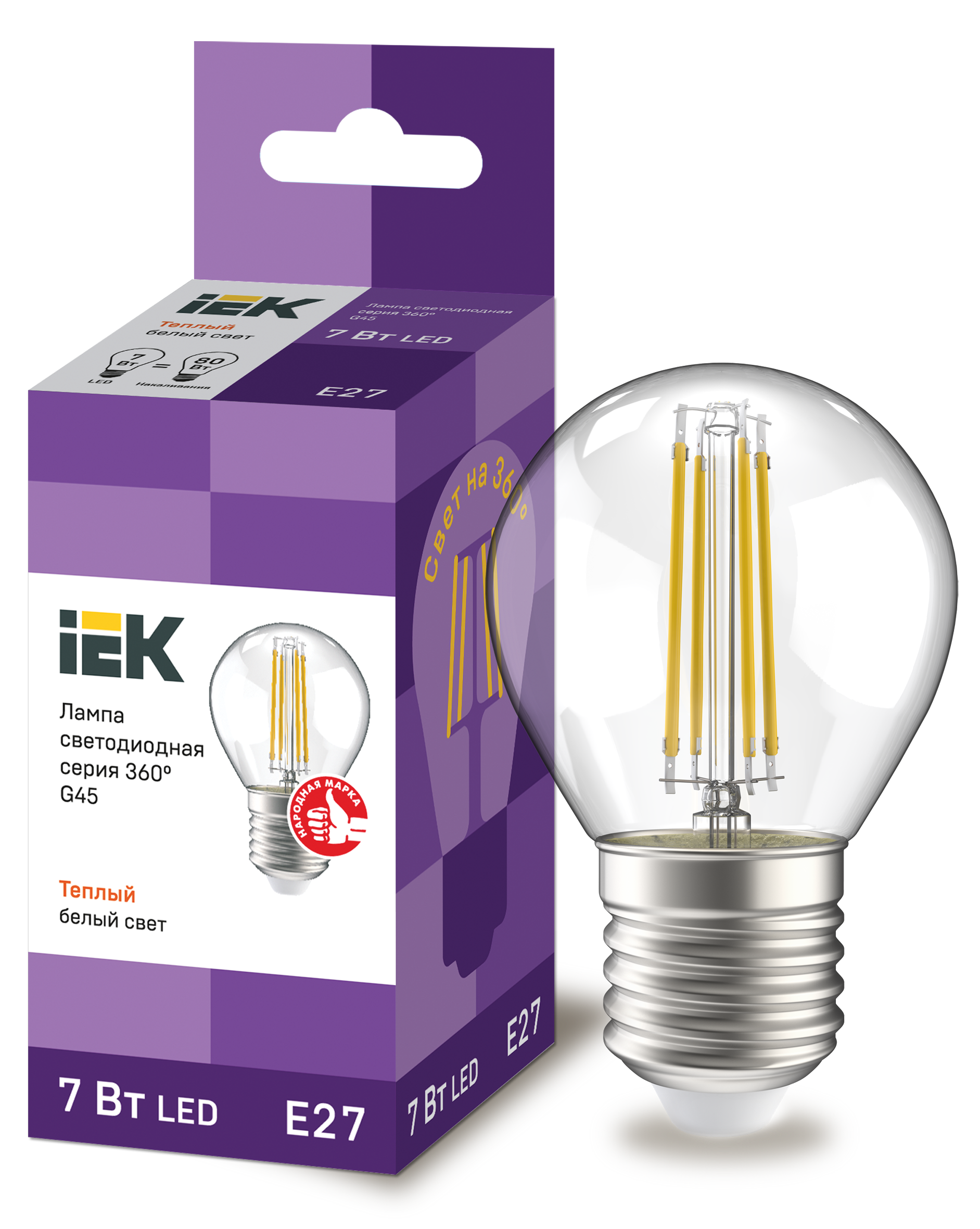 Лампа LED G45 шар прозрачная 7Вт 230В 3000К E27 серия 360° IEK