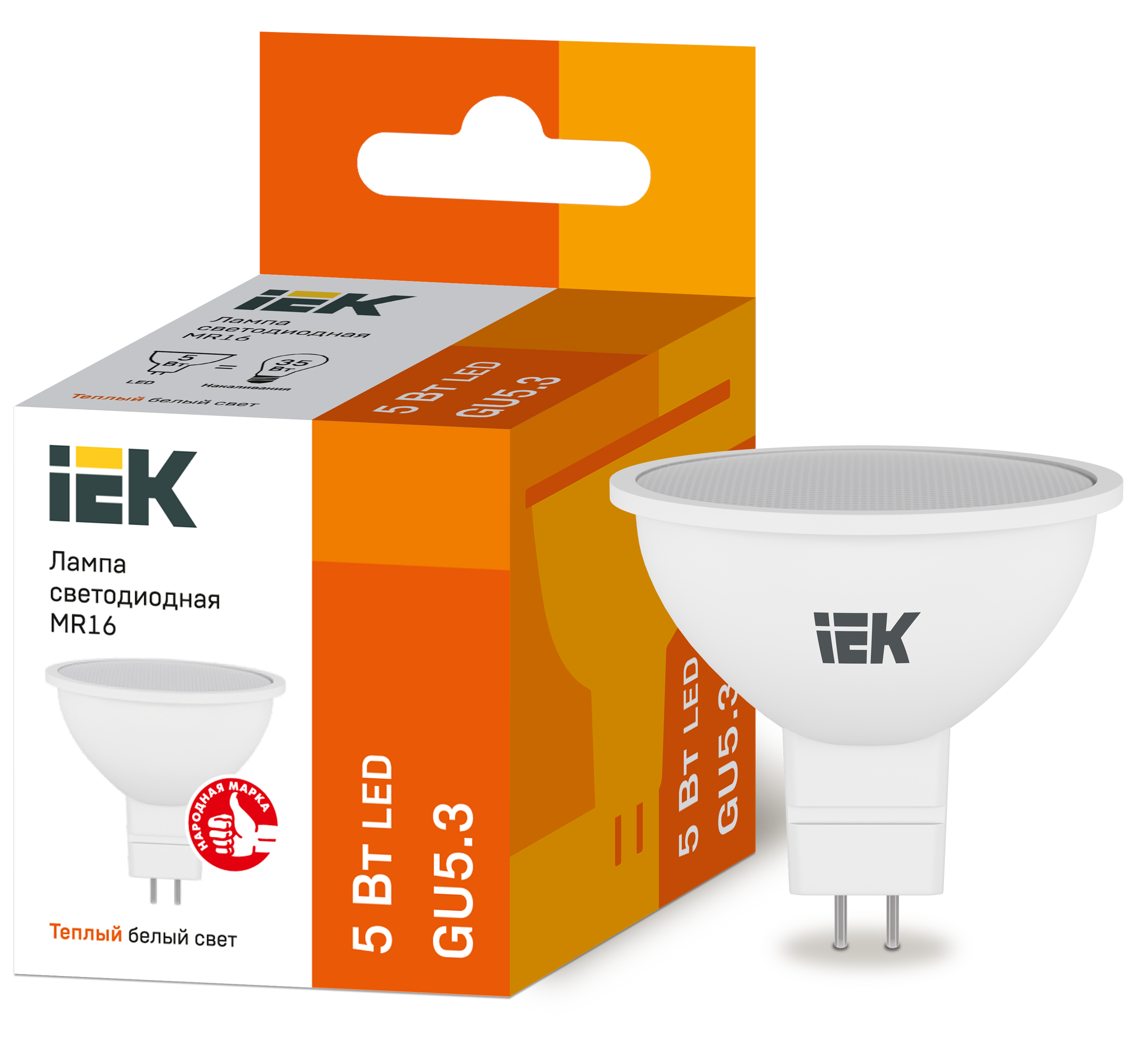 Лампа LED MR16 софит 5Вт 230В 3000К GU5.3 IEK