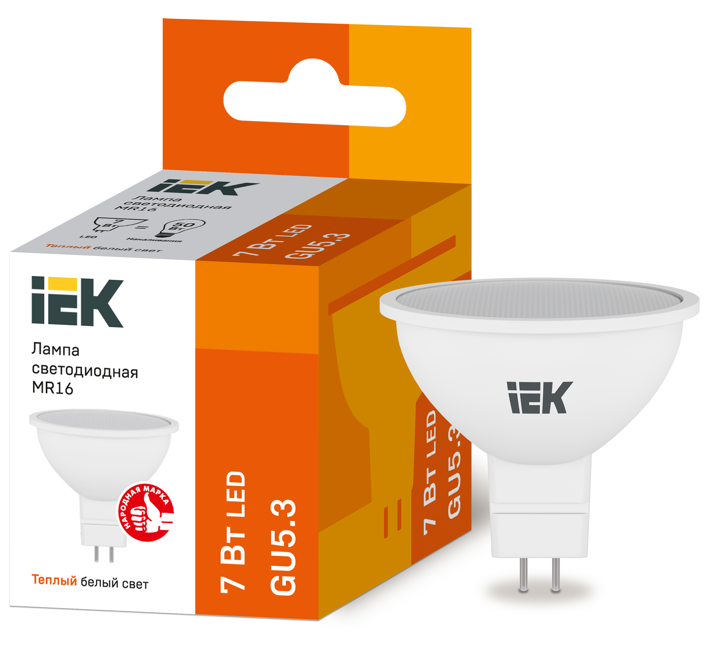 Лампа LED MR16 софит 7Вт 230В 3000К GU5.3 IEK