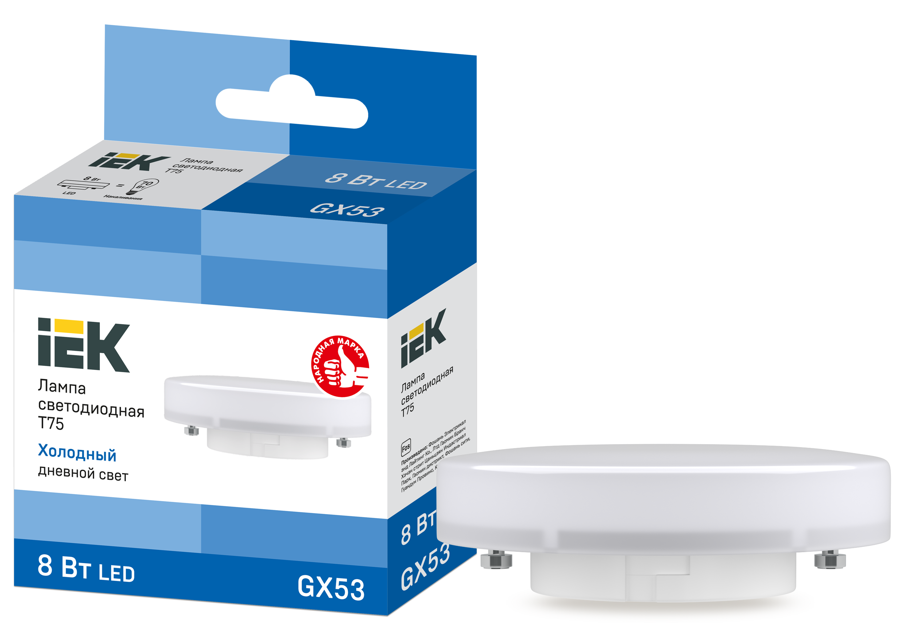 Лампа LED T75 таблетка 8Вт 230В 6500К GX53 IEK