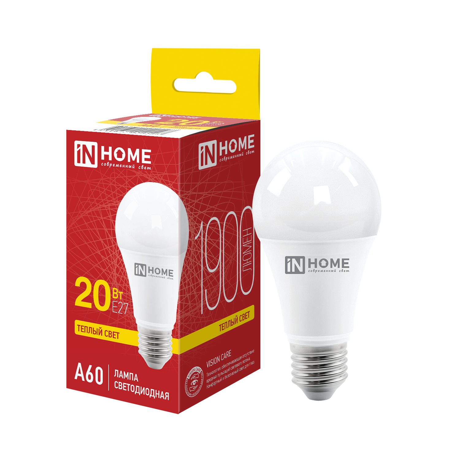 Лампа светодиодная LED-A60-VC 20Вт 230В Е27 3000К 1900Лм IN HOME