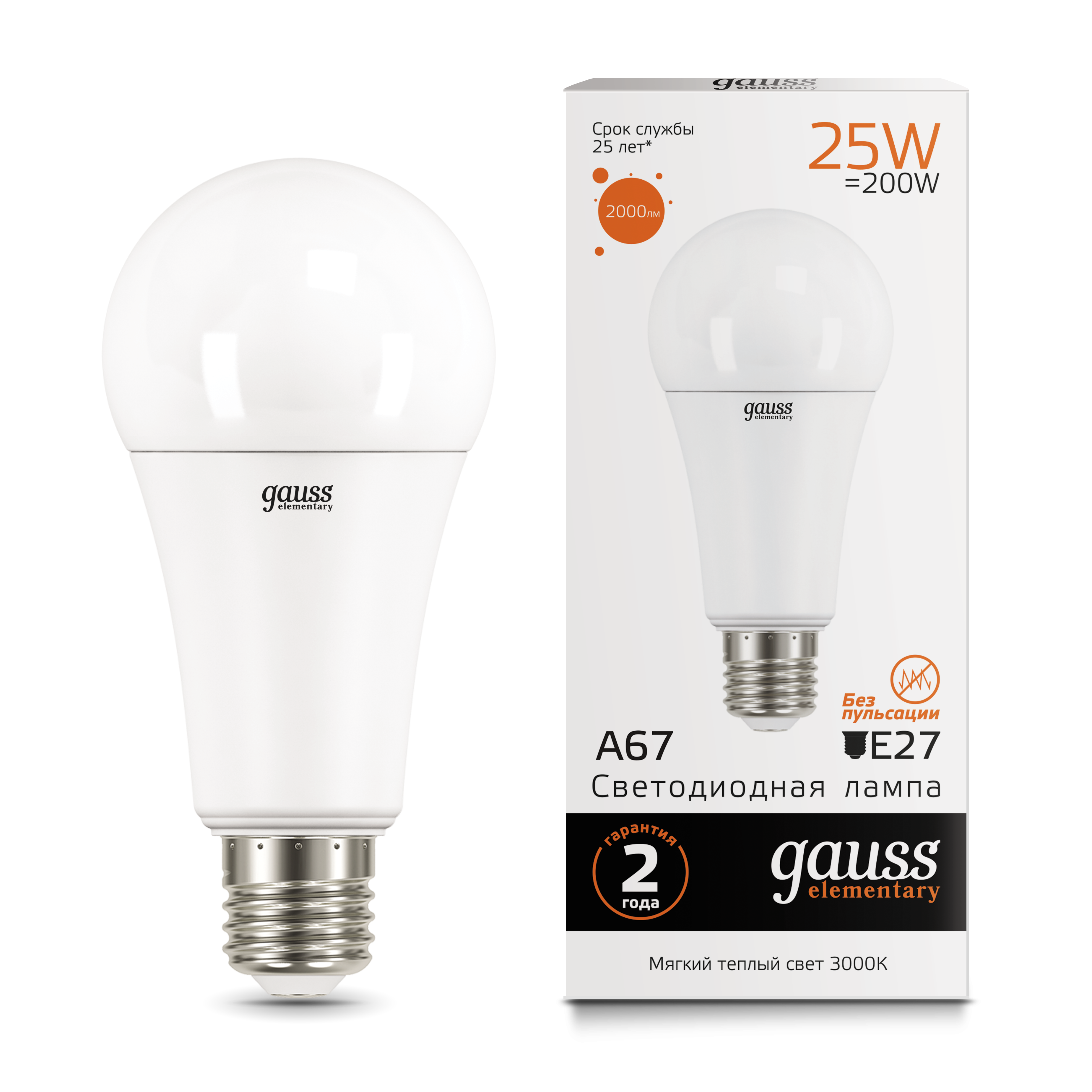 Лампа светодиодная LED-A67 25Вт E27 3000K 2000Лм Elementary GAUSS