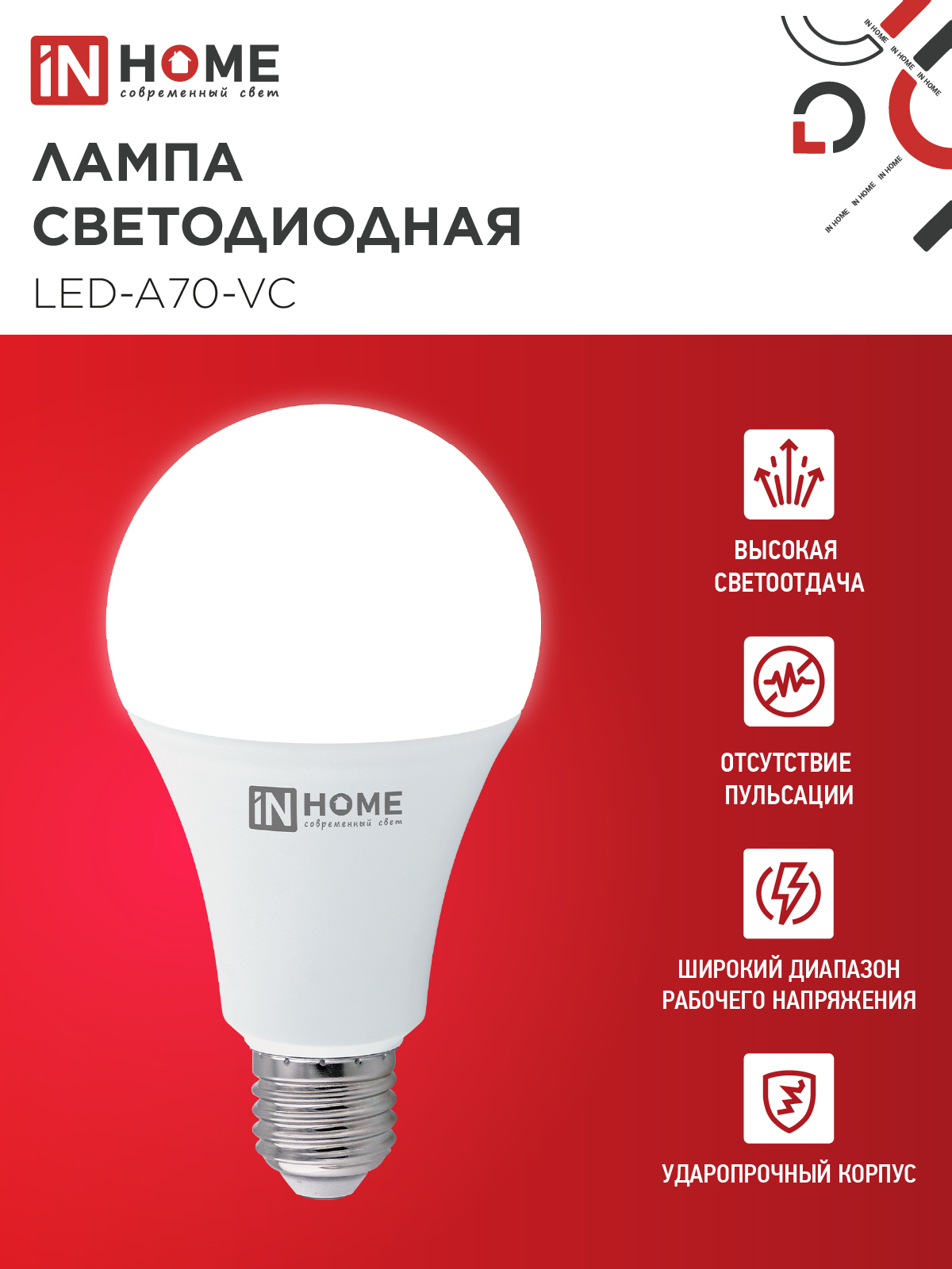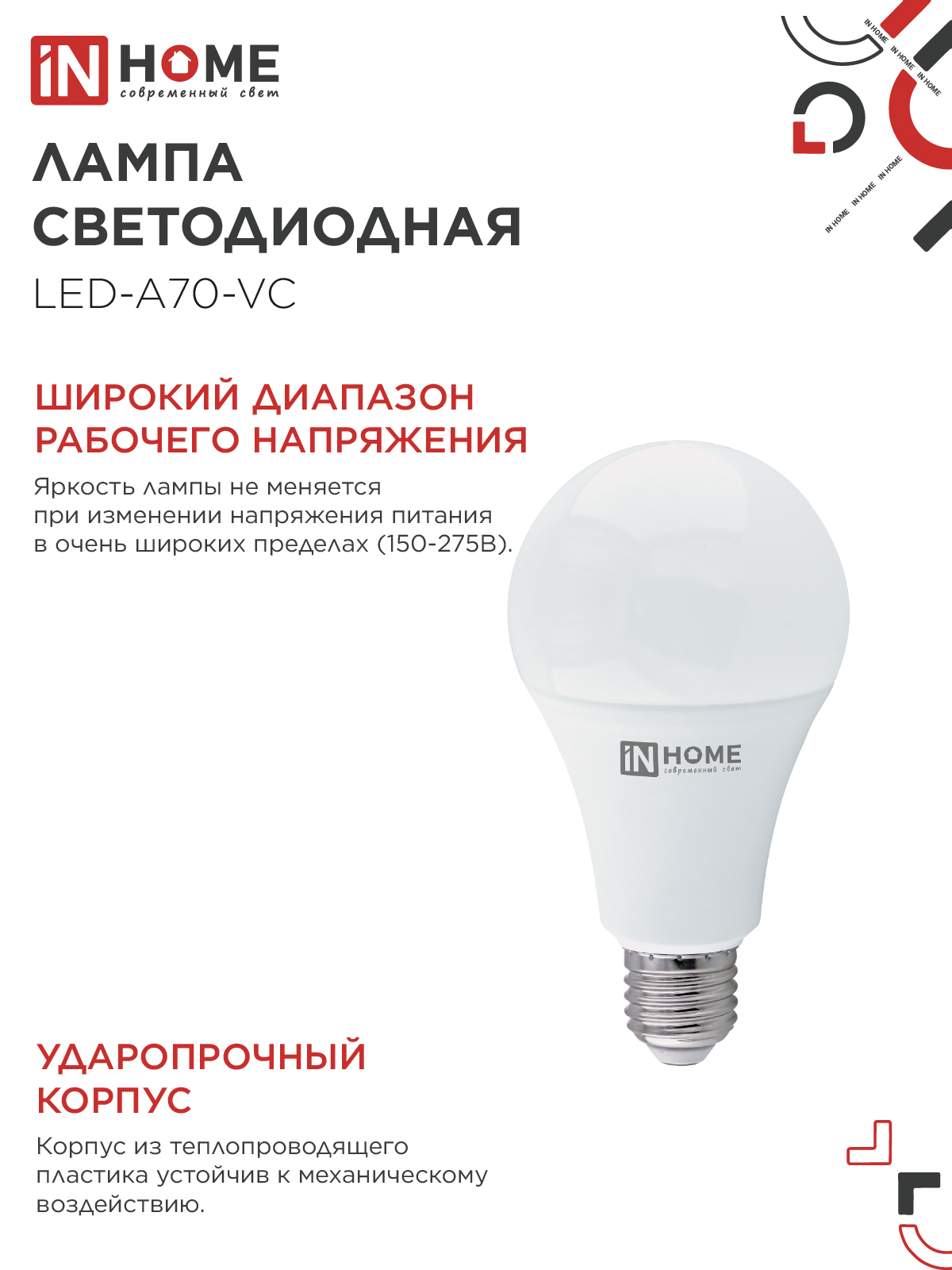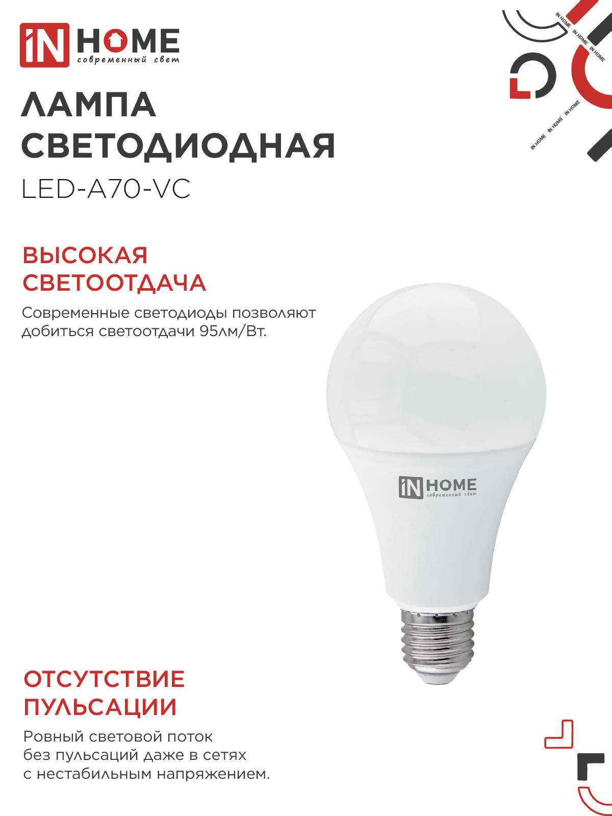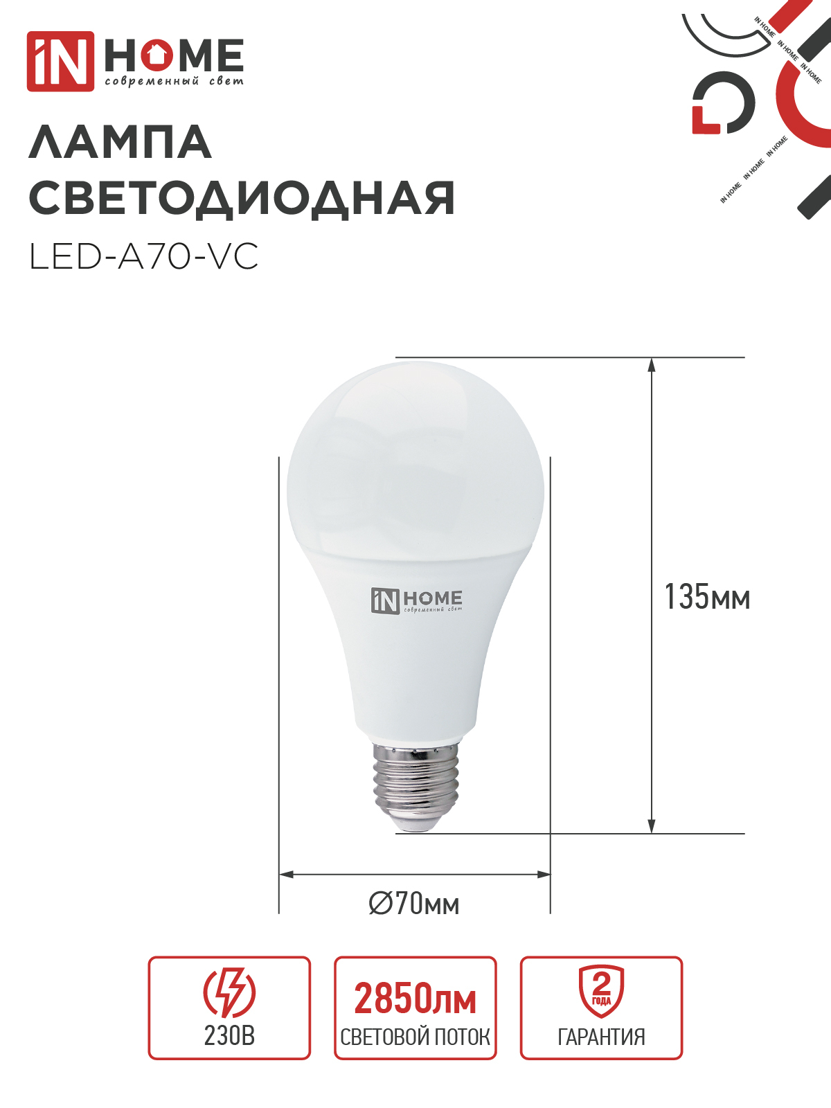 Лампа светодиодная LED-A70-VC 30Вт 230В Е27 4000К 2850Лм IN HOME