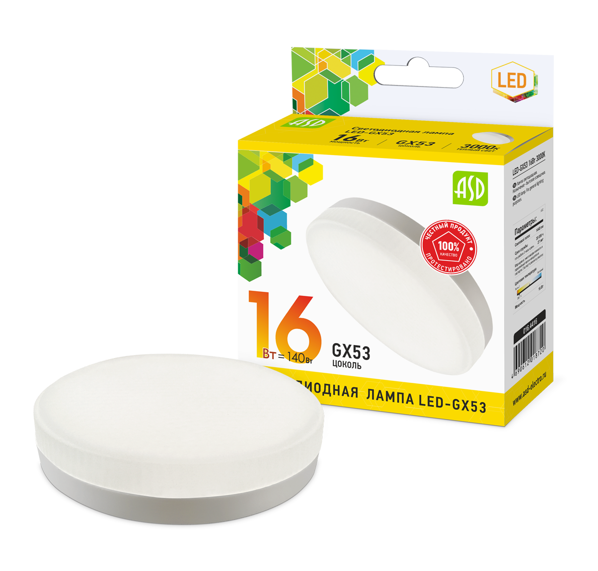 Лампа светодиодная LED-GX53-standard 16Вт 230В 3000К 1440Лм ASD