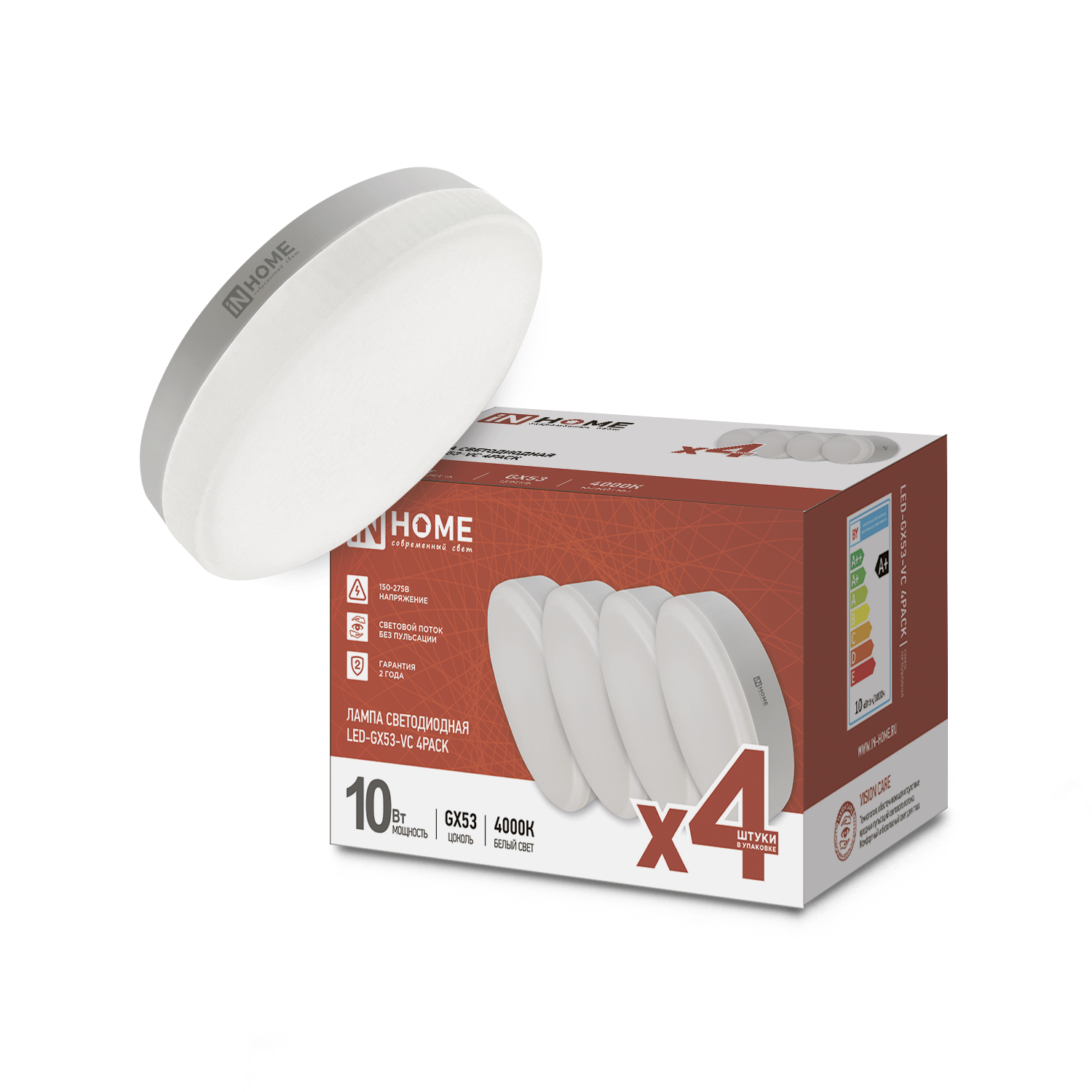 Лампа светодиодная LED-GX53-VC 4PACK 10Вт 230В 4000К 950Лм (4шт./упак.) IN HOME
