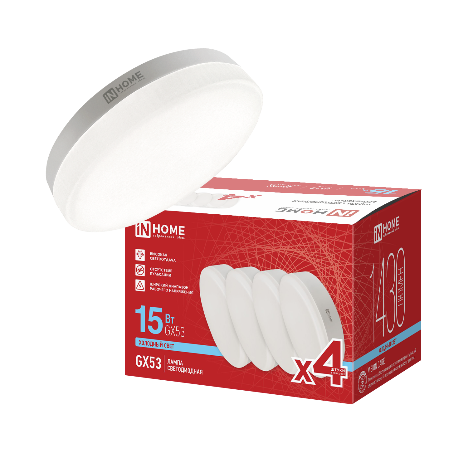 Лампа светодиодная LED-GX53-VC 4PACK 15Вт 230В 6500К 1430Лм (4шт./упак.) IN HOME