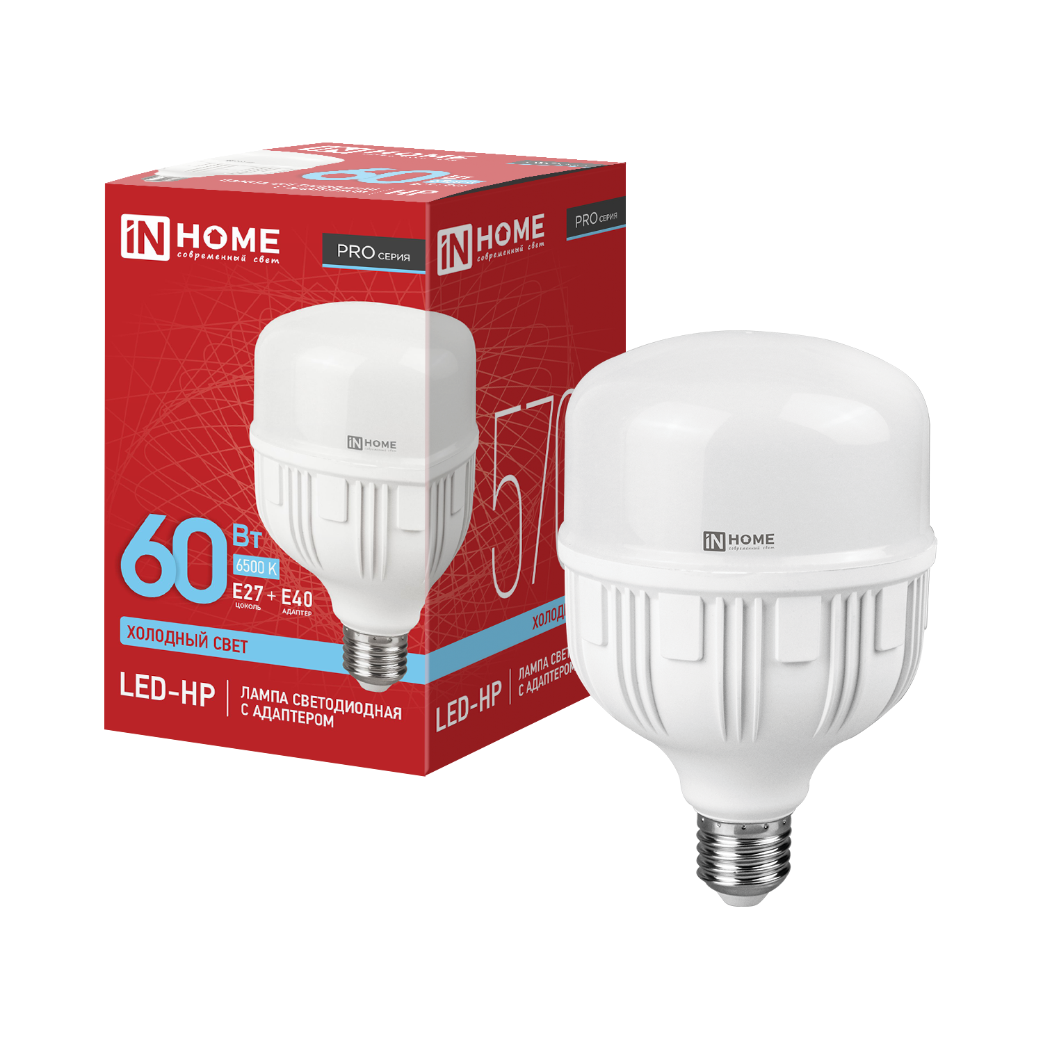 Лампа светодиодная LED-HP-PRO 60Вт 230В E27 с адаптером Е40 6500К 5700Лм IN HOME