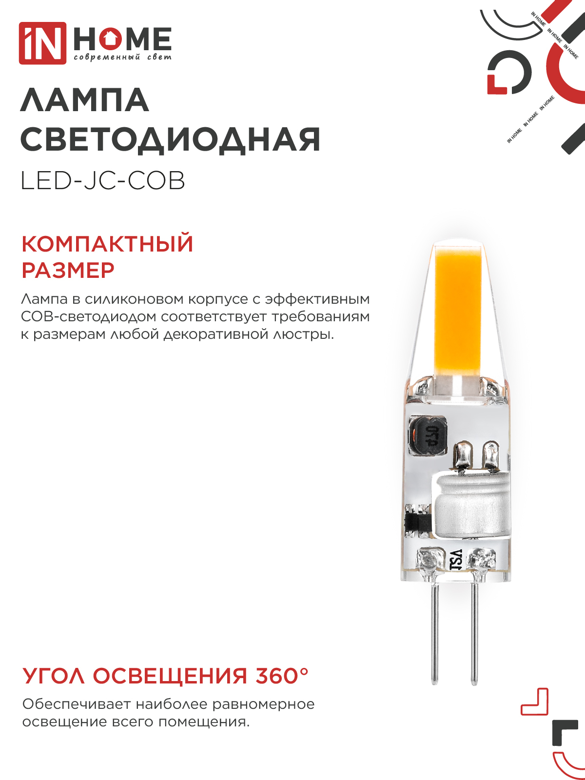 Лампа светодиодная LED-JC-COB 3Вт 12В G4 6500К 310Лм IN HOME