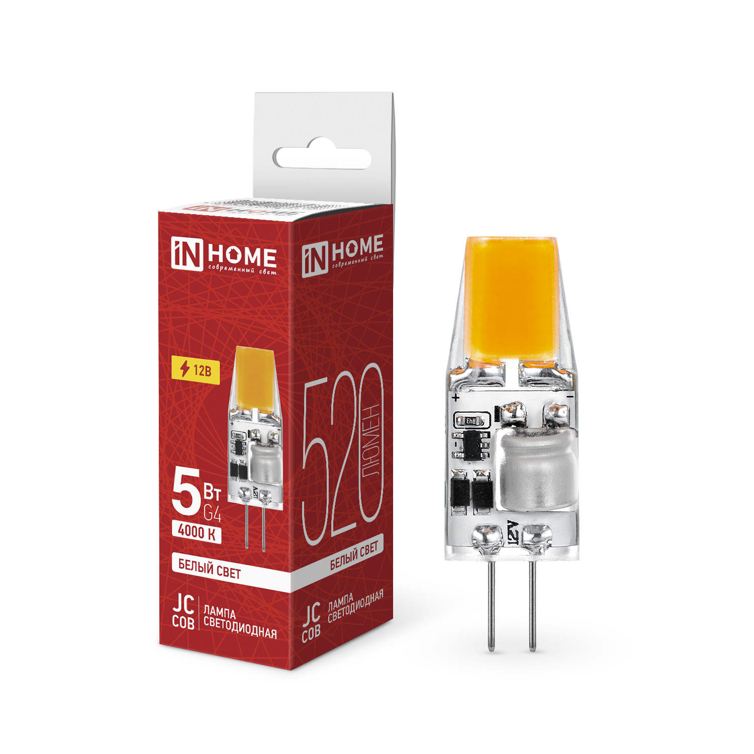Лампа светодиодная LED-JC-COB 5Вт 12В G4 4000К 520Лм IN HOME