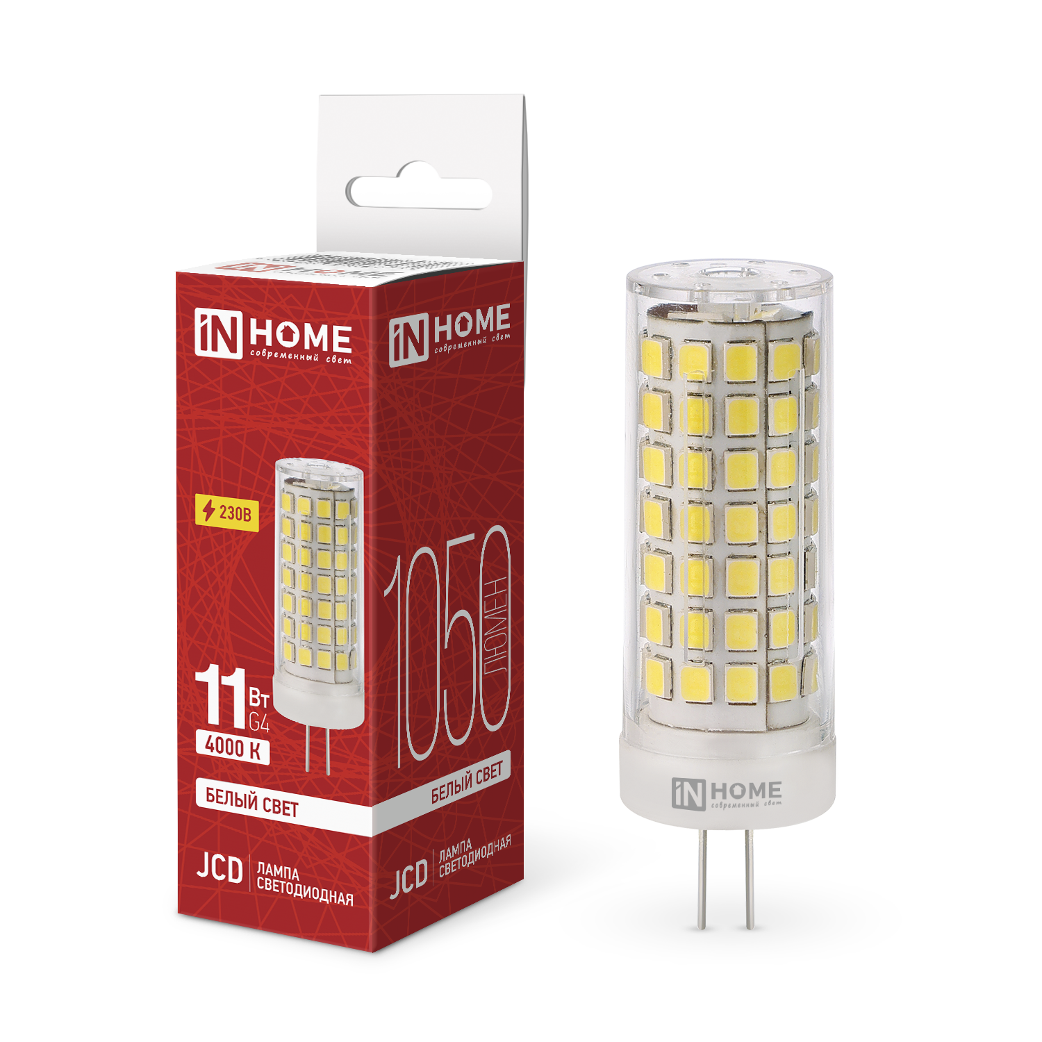 Лампа светодиодная LED-JCD 11Вт 230В G4 4000К 1050Лм IN HOME