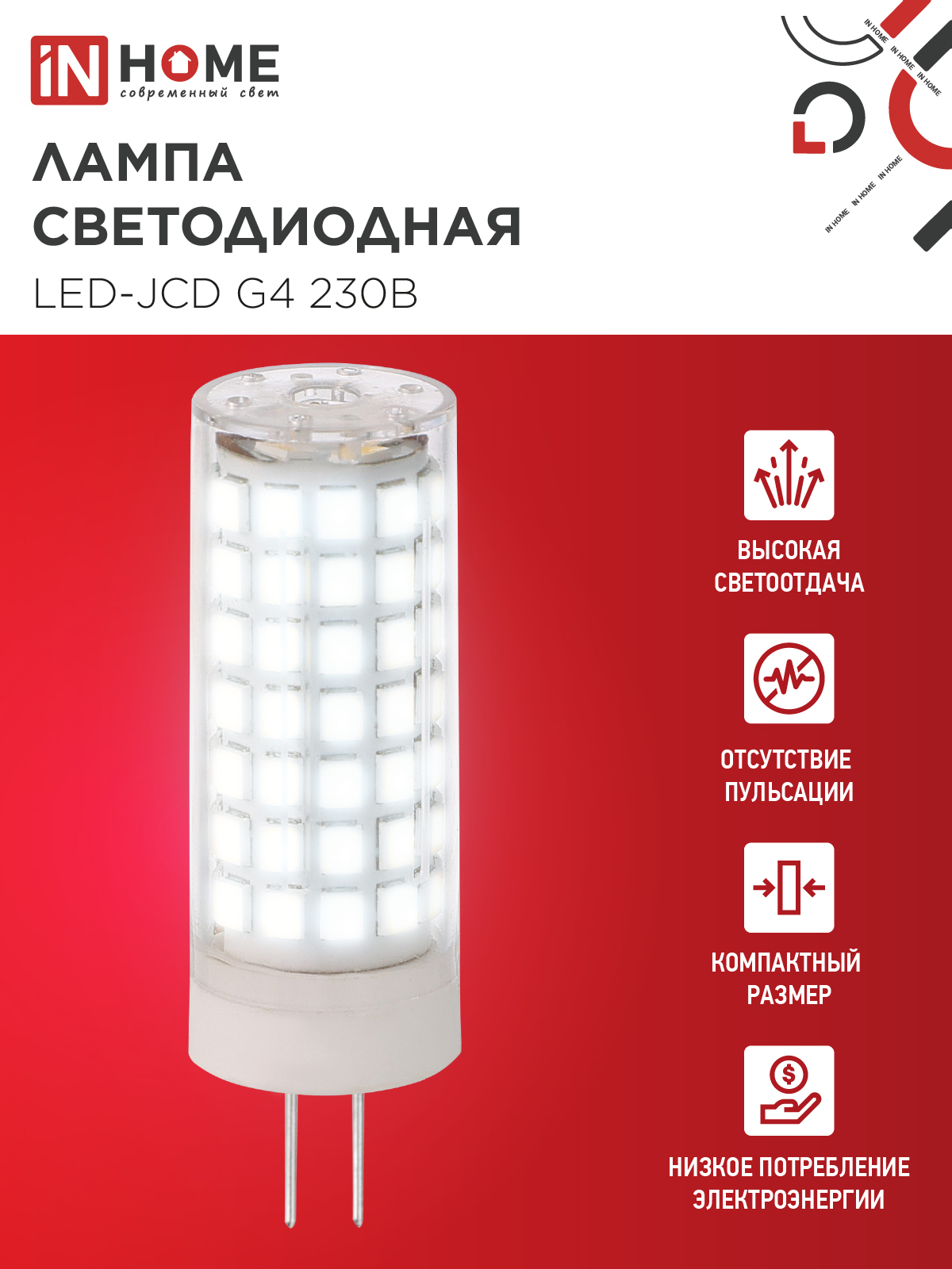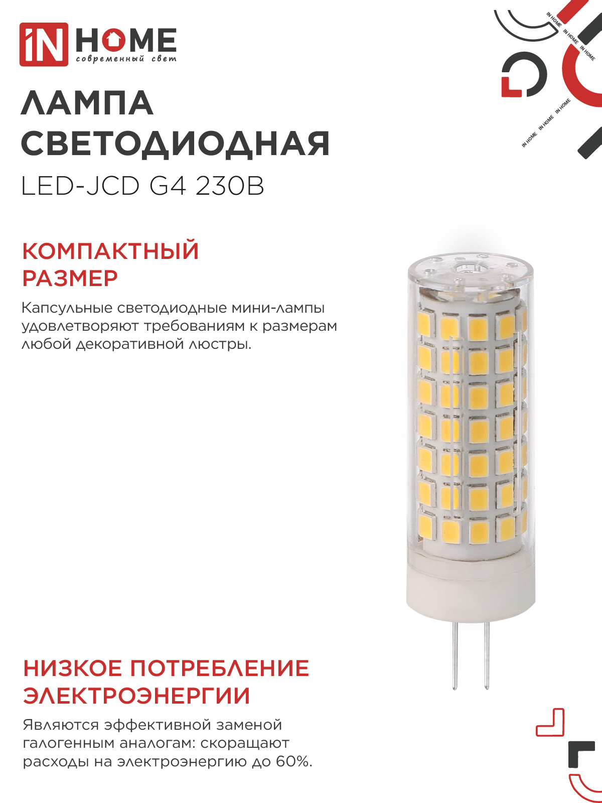 Лампа светодиодная LED-JCD 11Вт 230В G4 6500К 1050Лм IN HOME