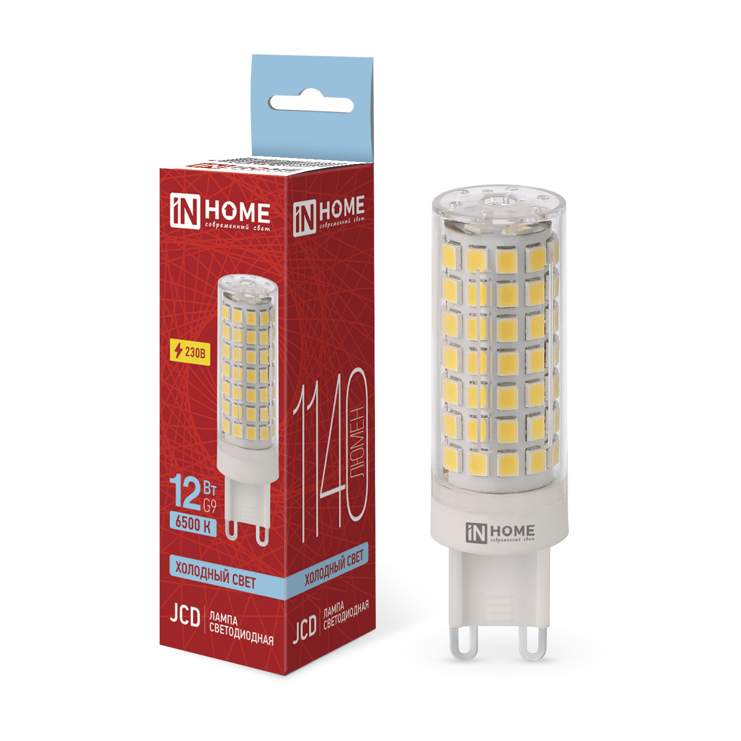 Лампа светодиодная LED-JCD 12Вт 230В G9 6500К 1140Лм IN HOME